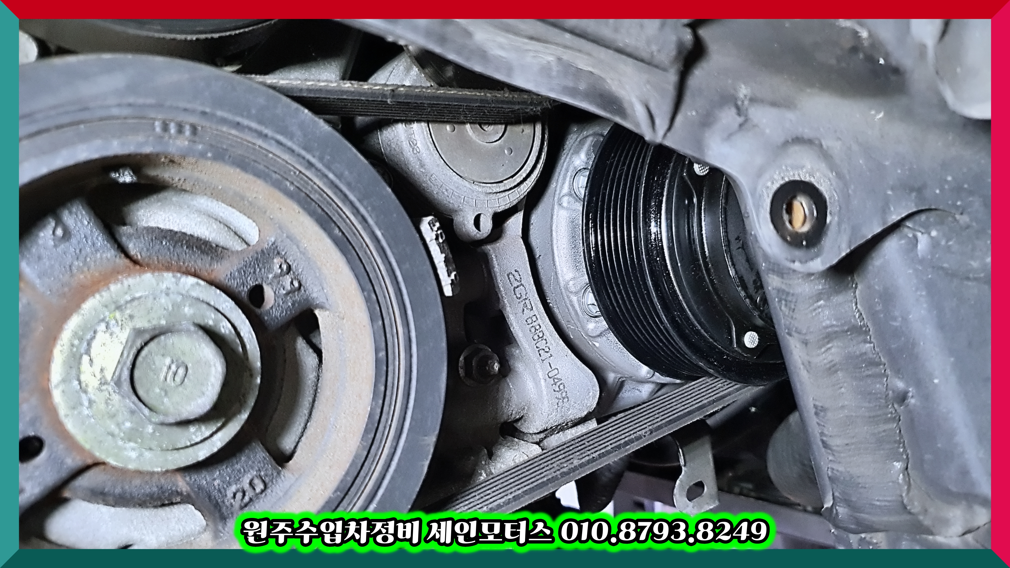 이 차량의 에어컨콤프레셔는 덕지덕지