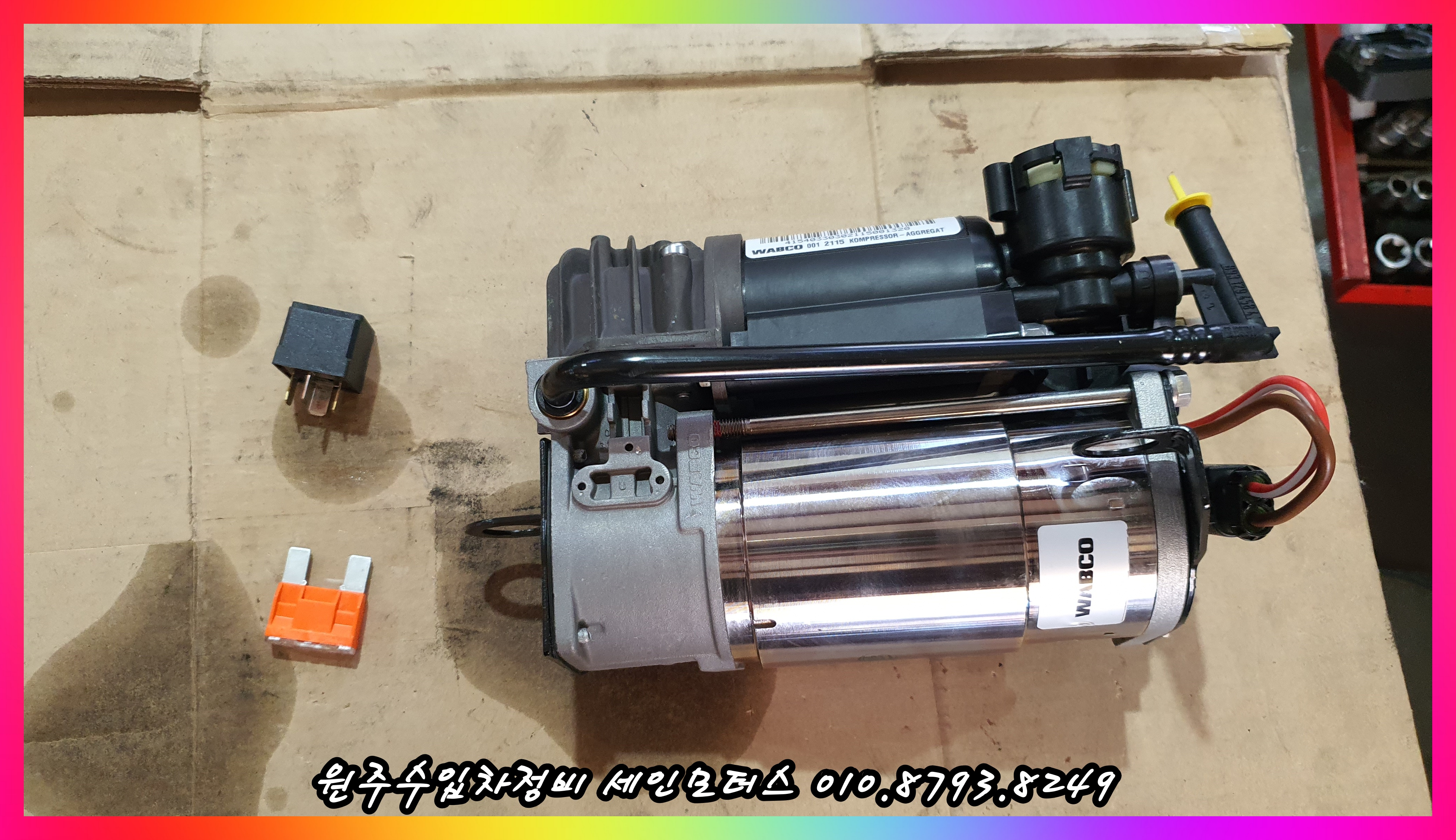 망가진 에어콤프레셔와 릴레이, 퓨즈 를 모두 교체했다.