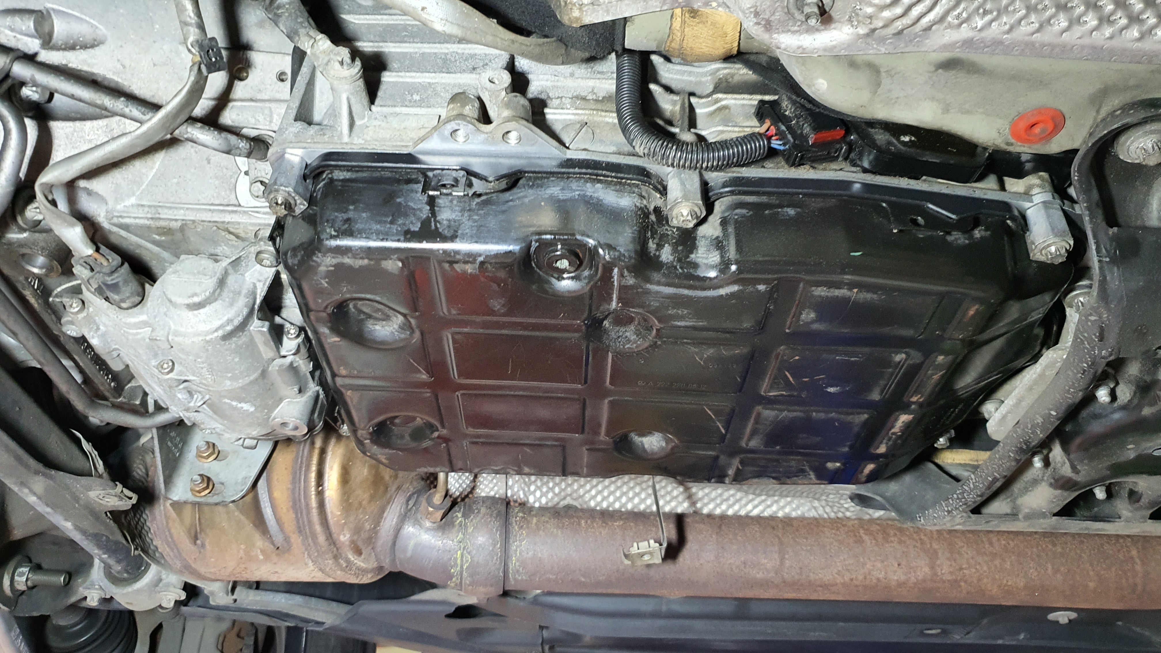 위에서 내려다보니 구석구석 엔진오일이 고여 있네요.