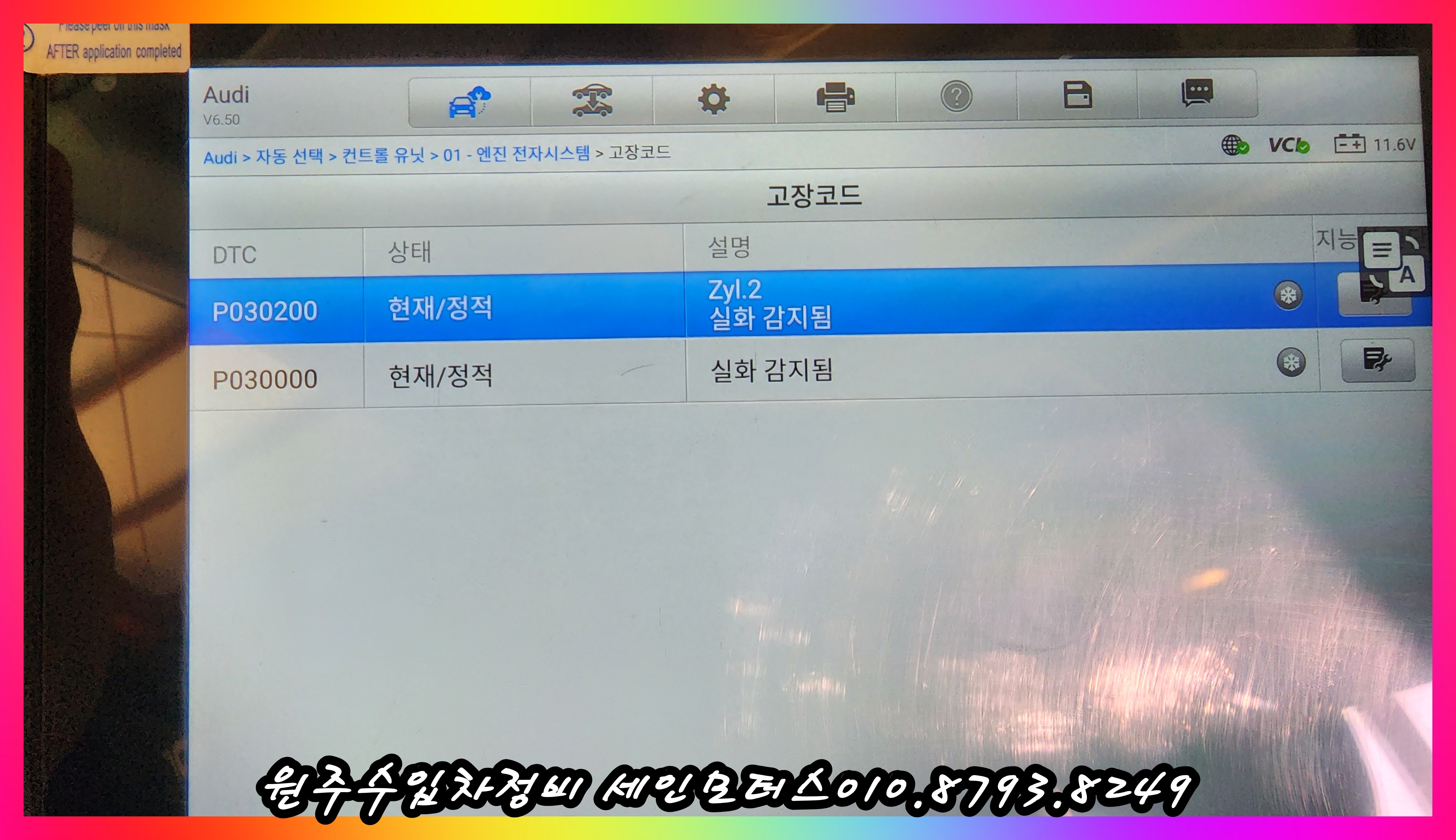 진단기 상의 고장코드에는 2번 실린더는 지속적으로 확인이 되었다.