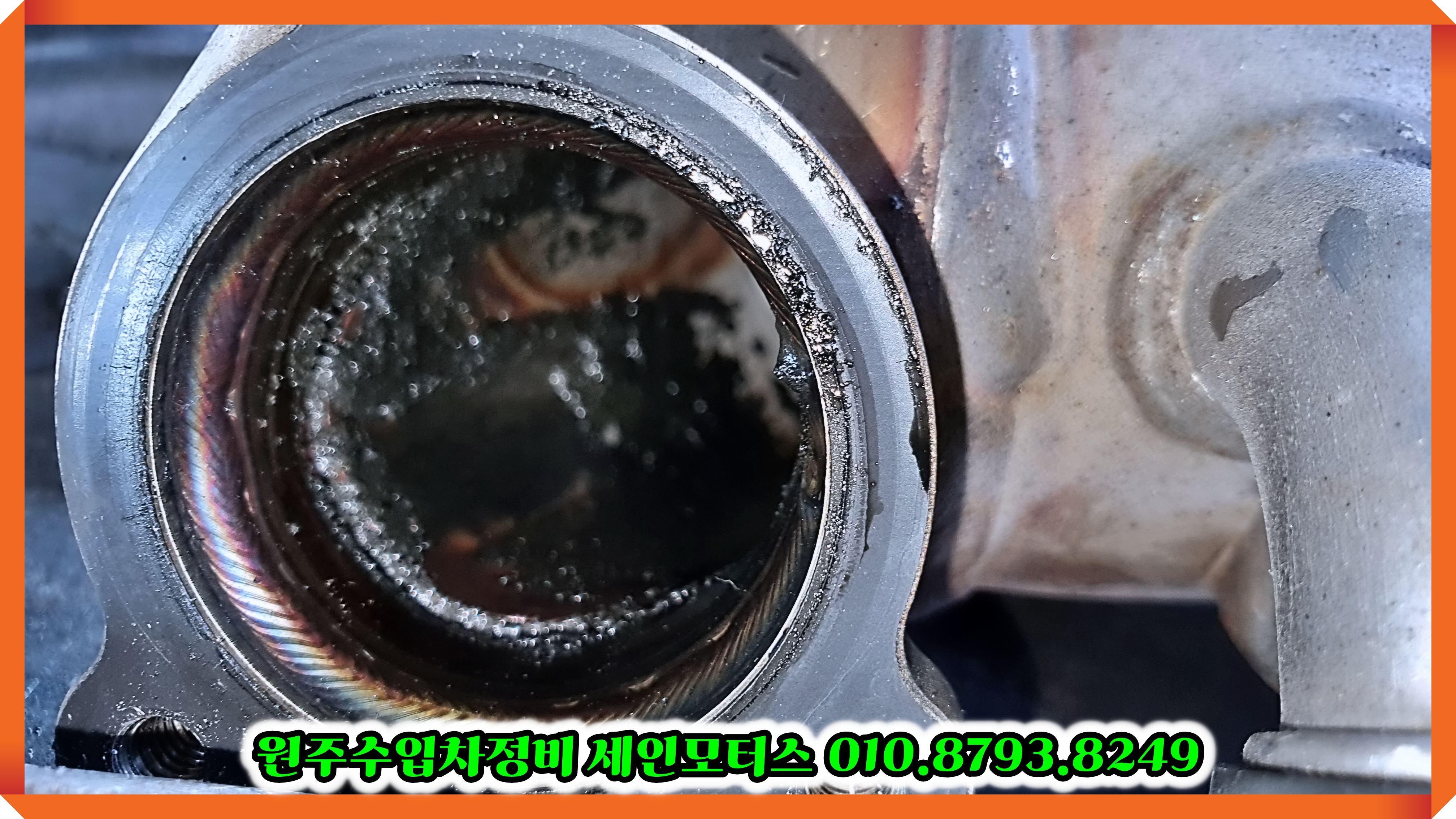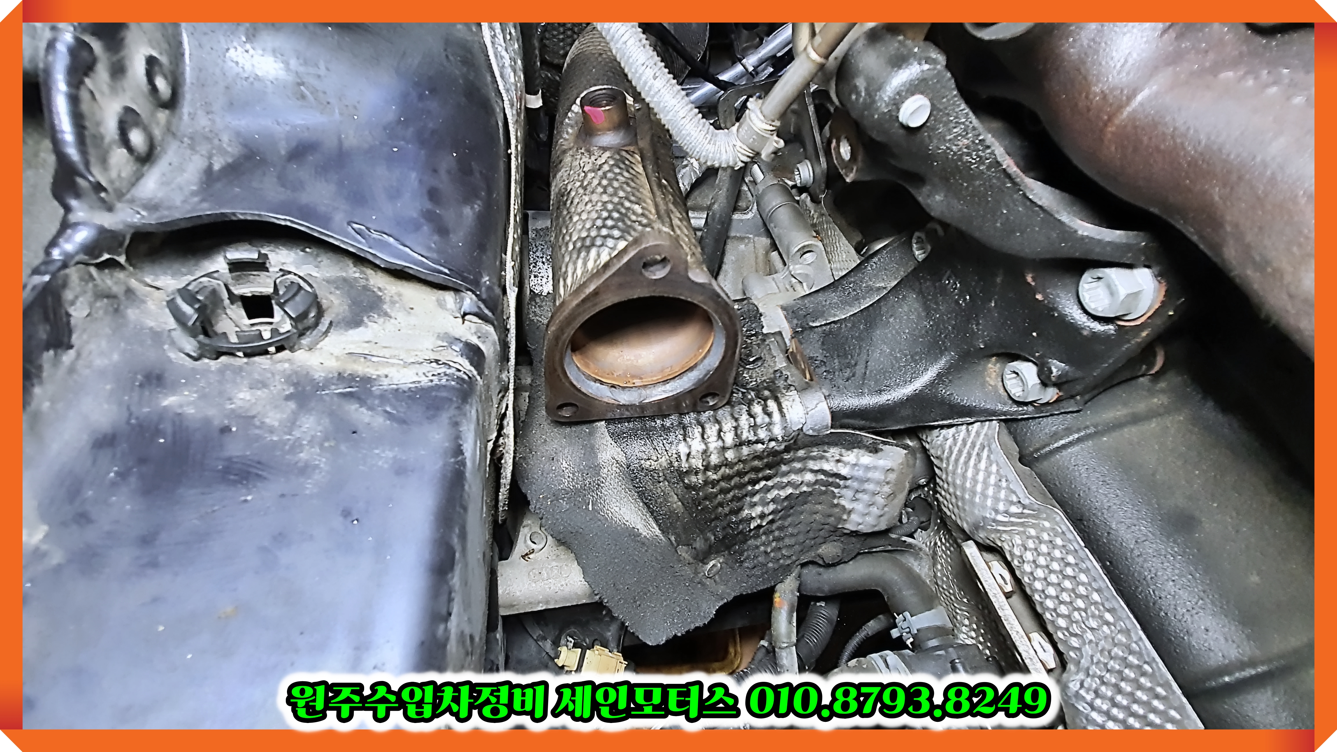 이 차량도 터보 가변샤프트 부분이 터져서 검은 카본이 많이 쏟아져 나오네요.