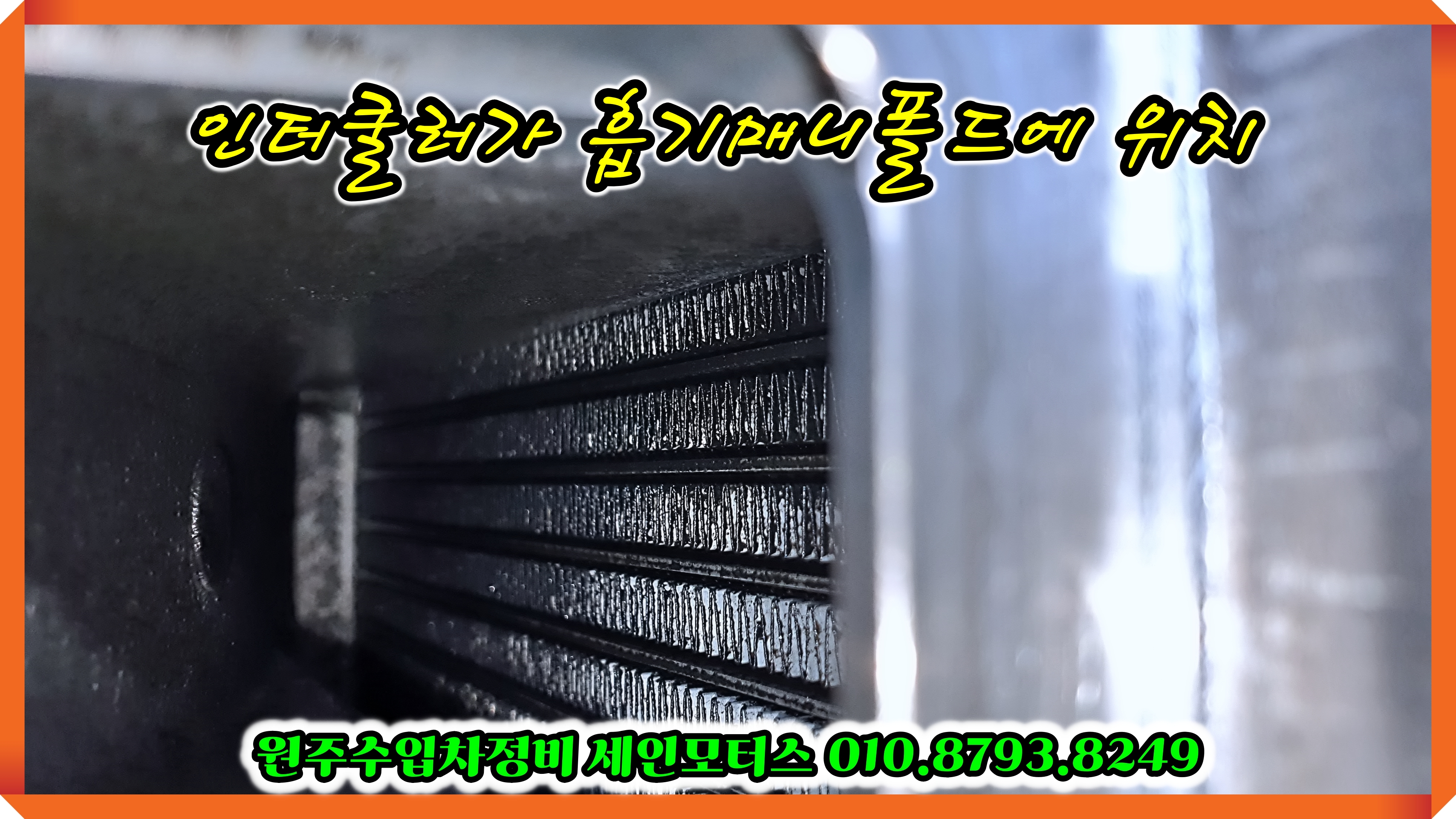 흡기 매니폴드 내부에 인터쿨러가 위치해 있는 특이한 구조입니다.