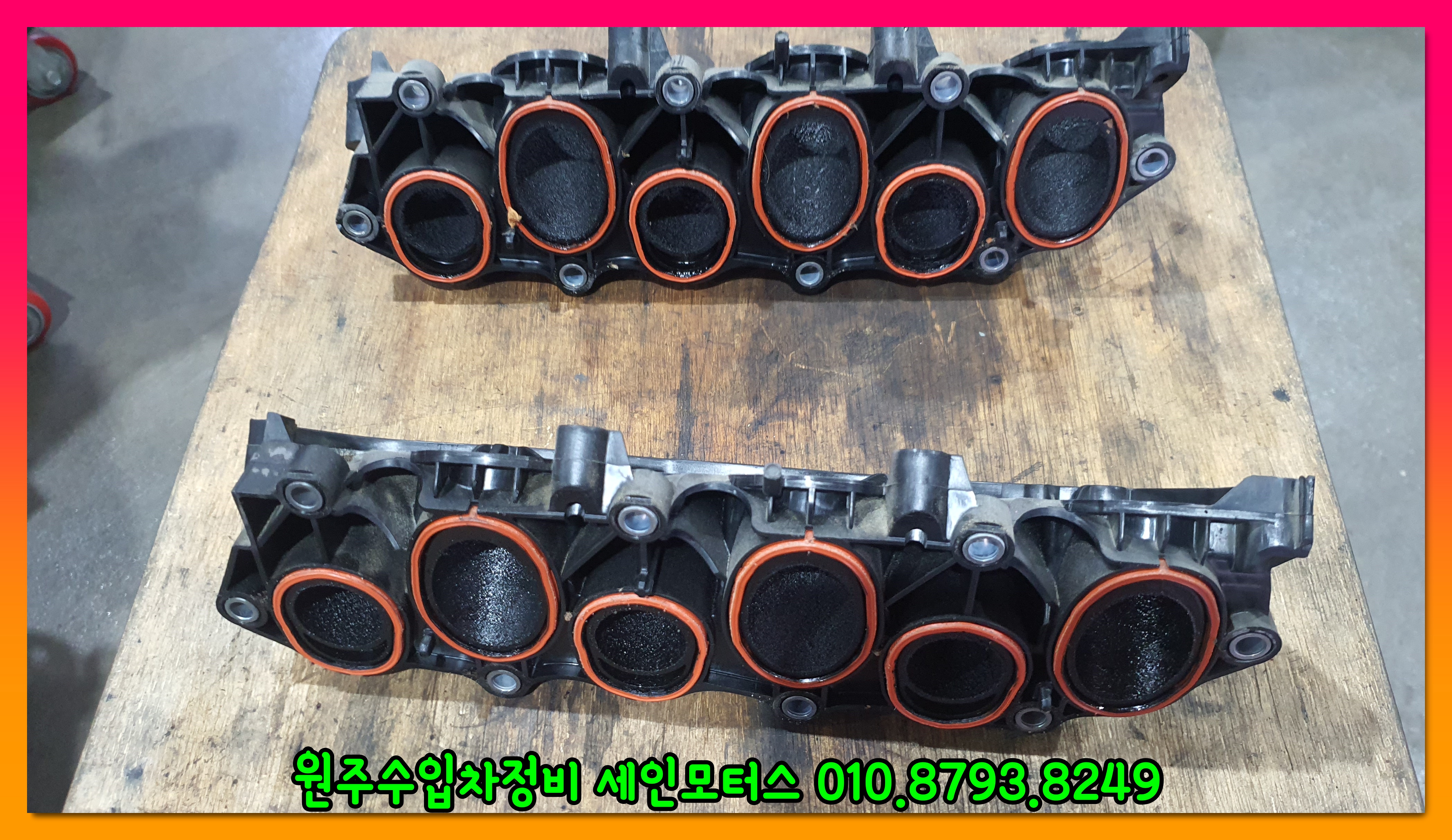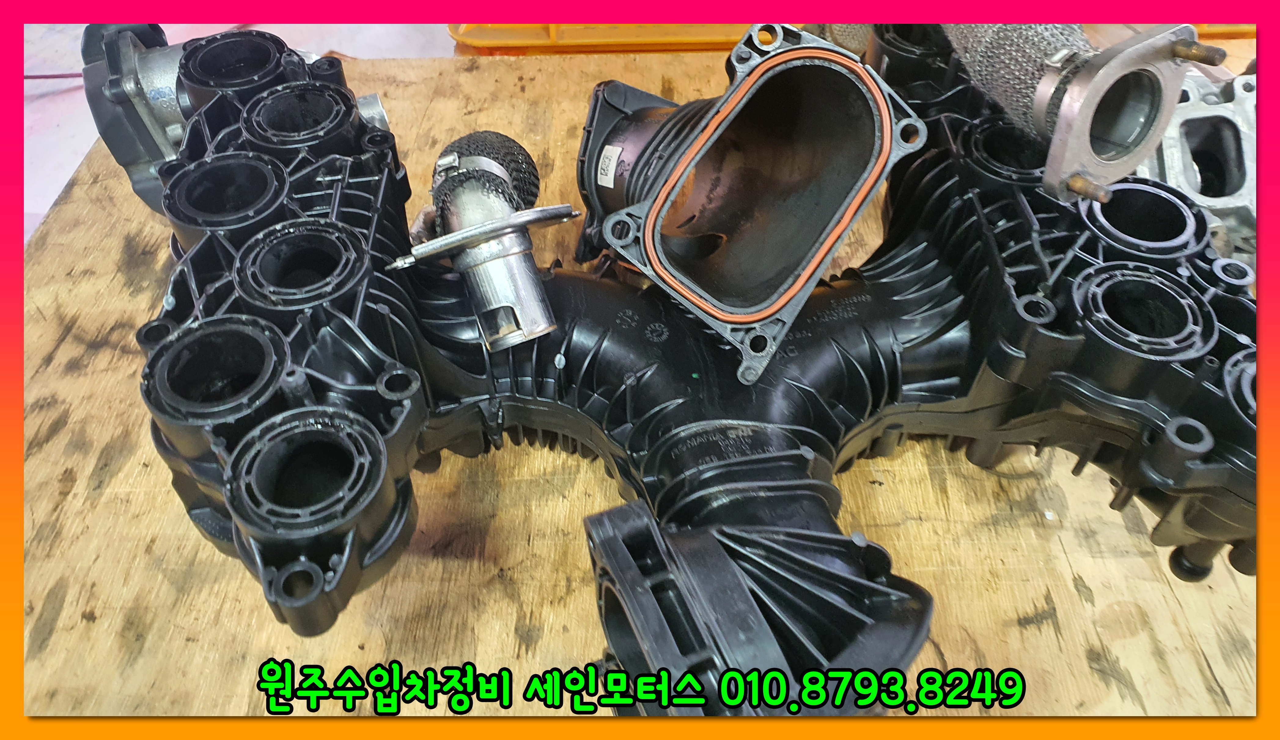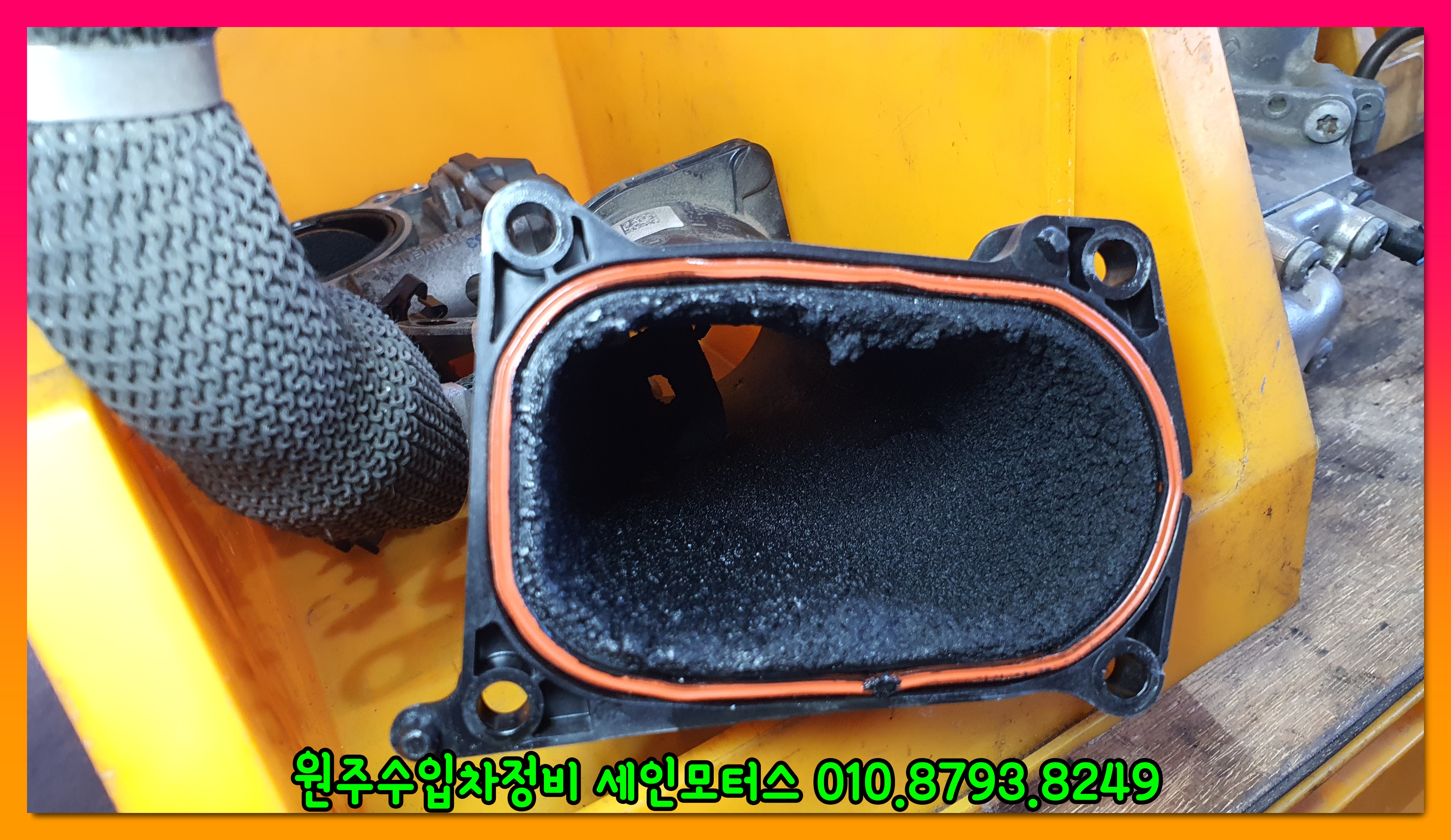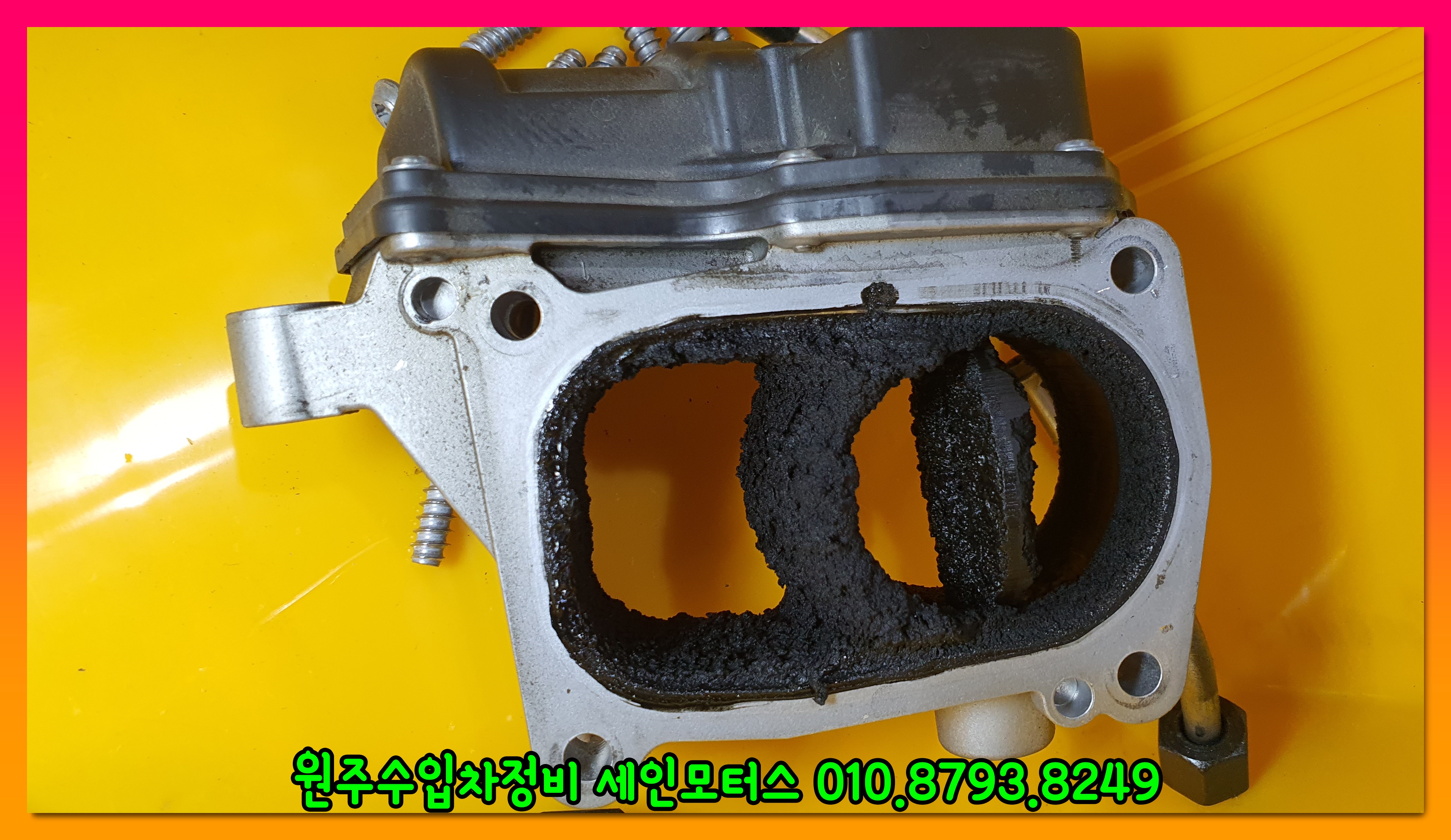 위 사진은 흡기관련 부품이다. 부품에 카본이 엄청나게 쌓여있는 것을 확인할 수 있다.