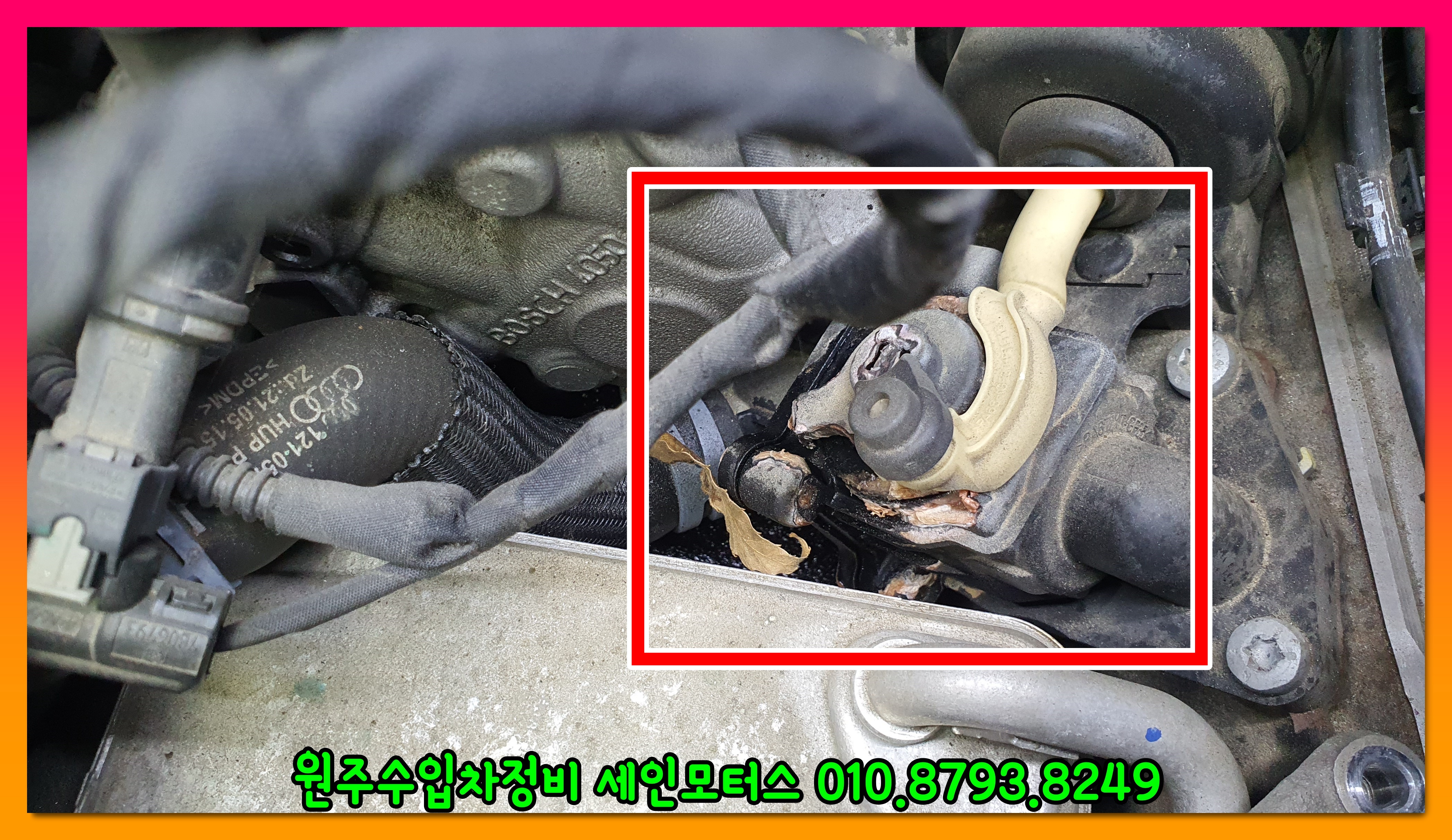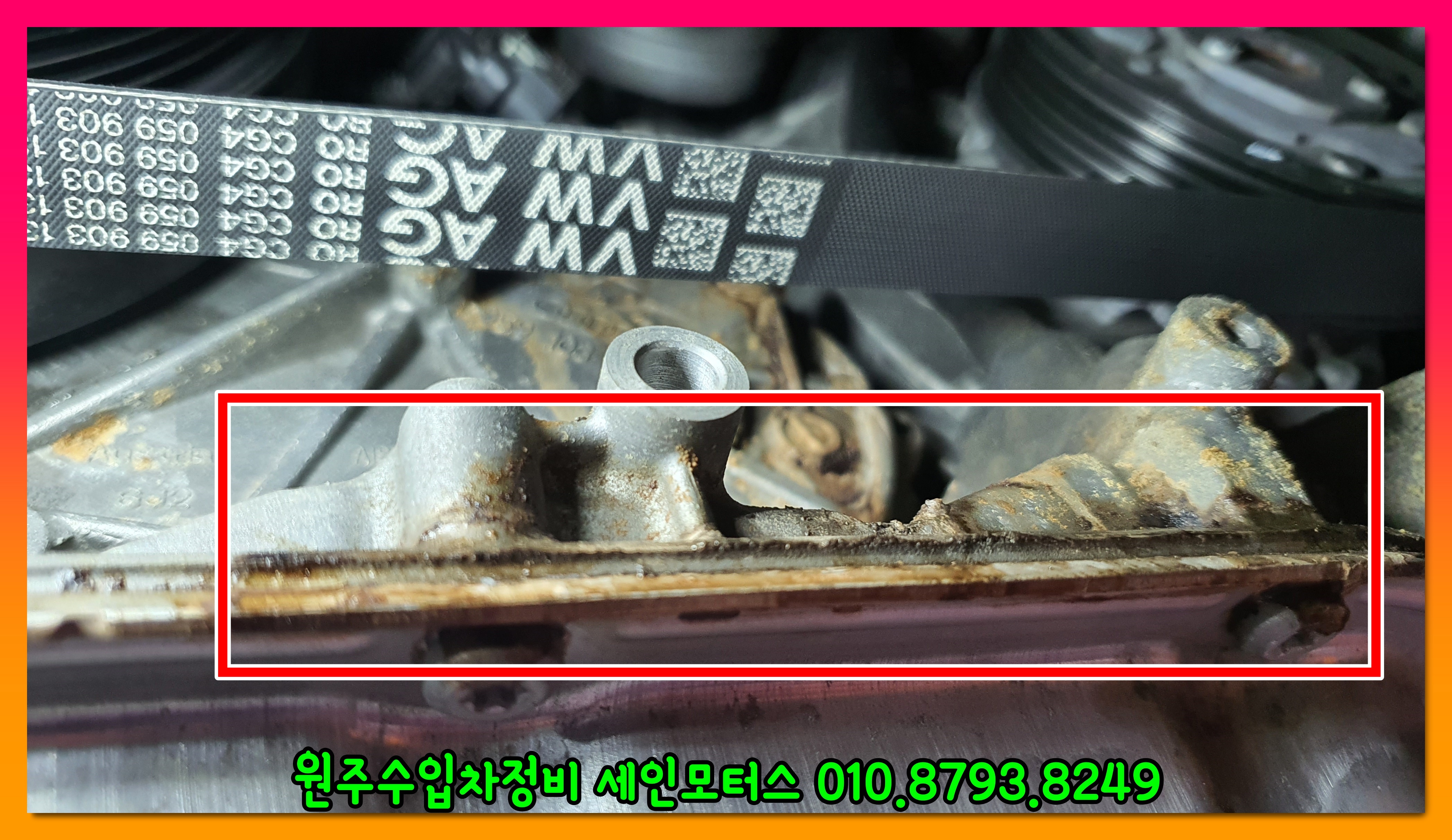 아우디 엔진들의 특징이 여기서 냉각수누수와 엔진오일 누유가 대부분 발생한다.