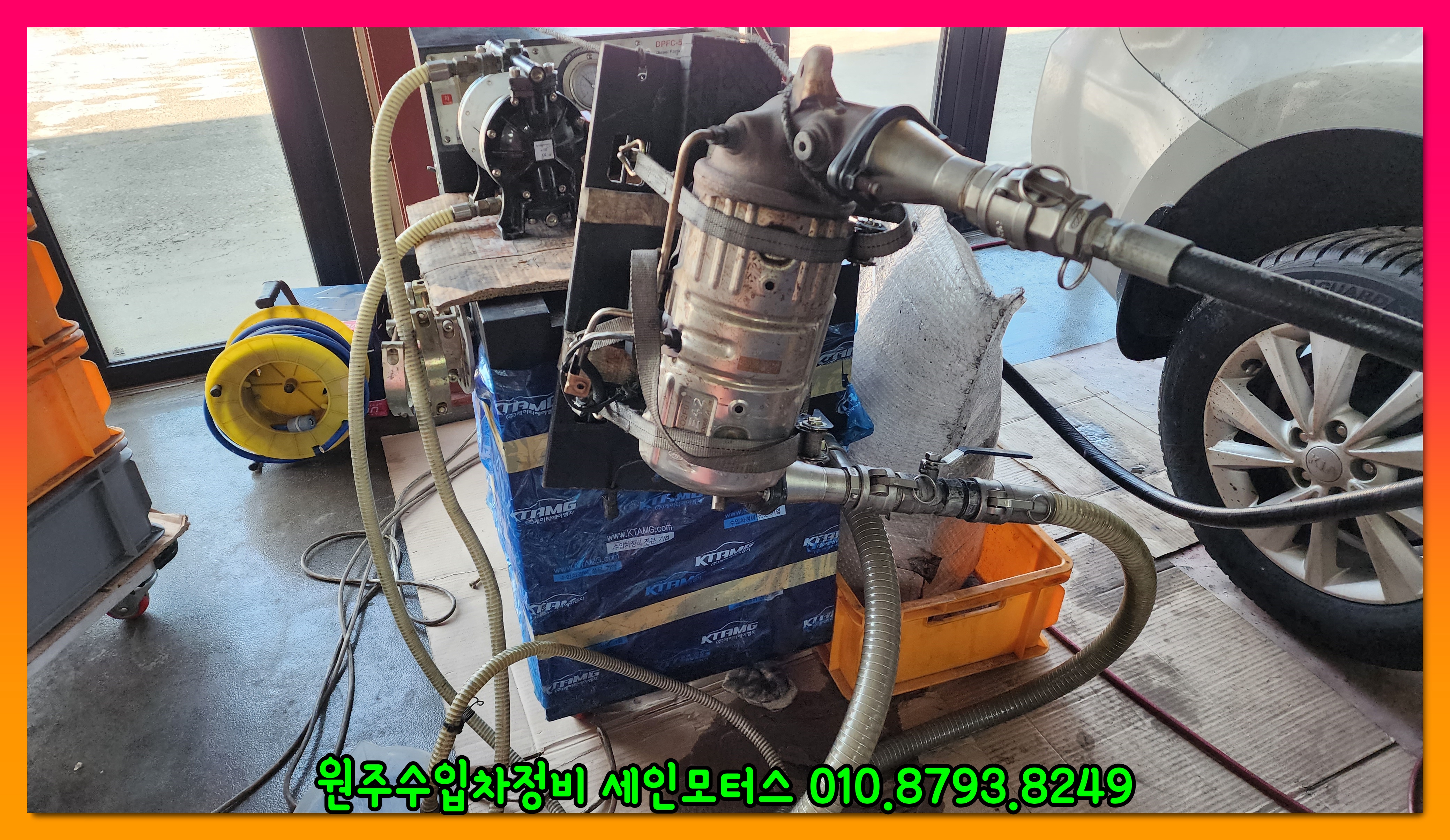 장치를 연결해서 dpf크리닝을 진행중이다.