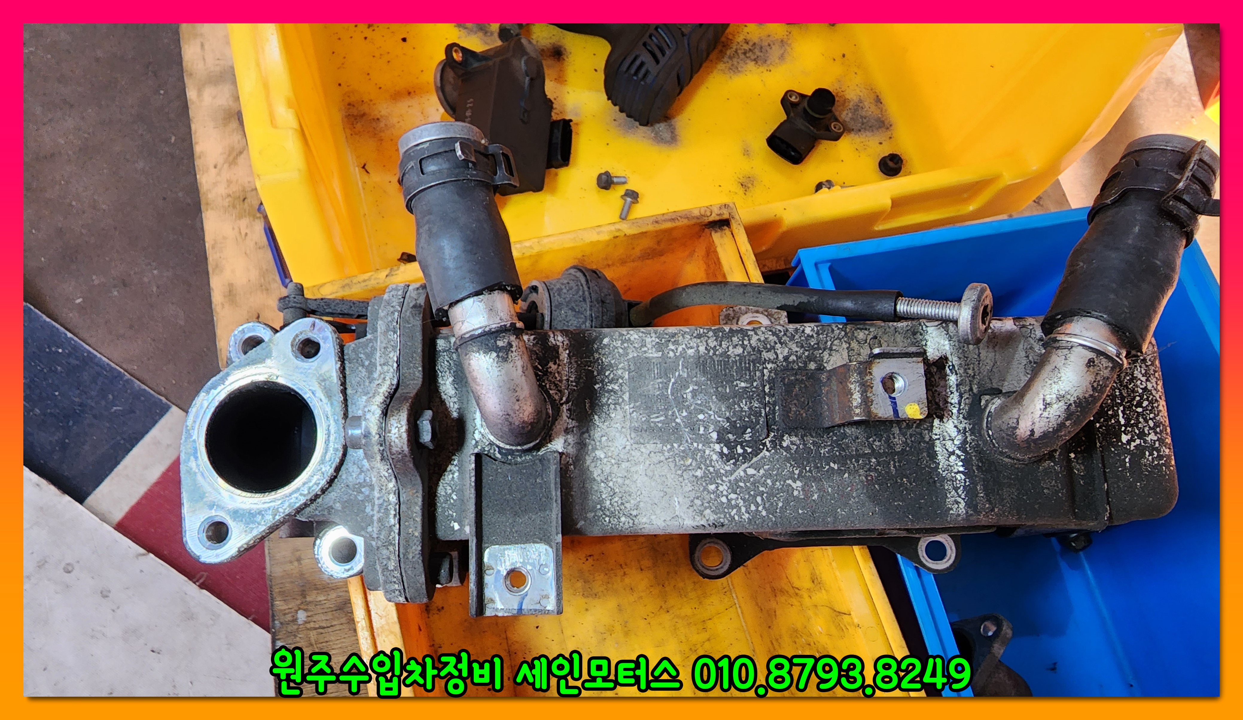 그외에 흡기에 관련된 부품들의 크리닝 전 모습이다.