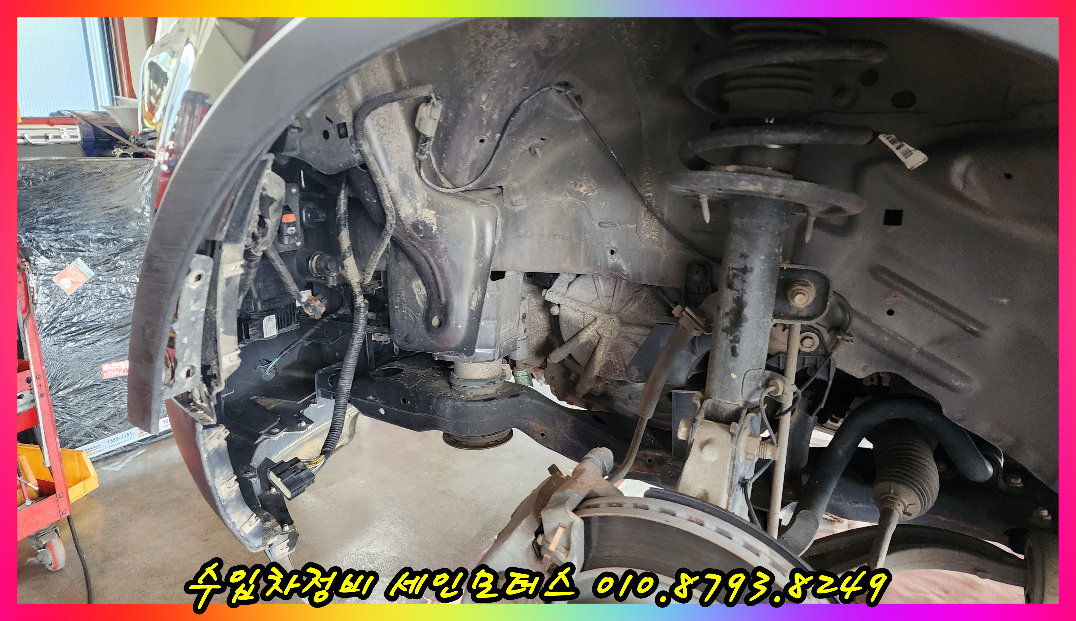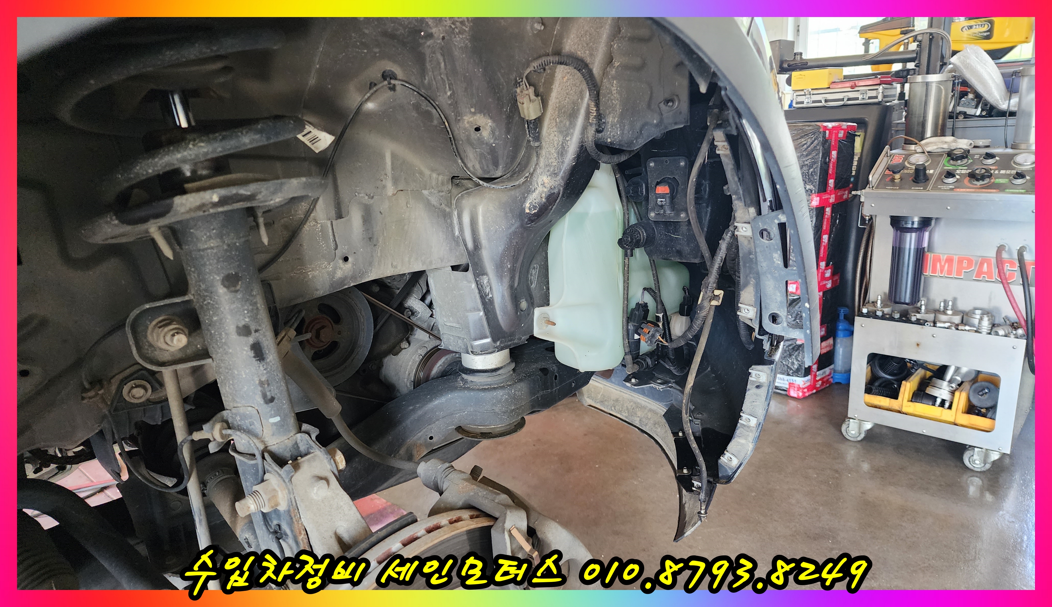 범퍼를 탈거한 상태이다.