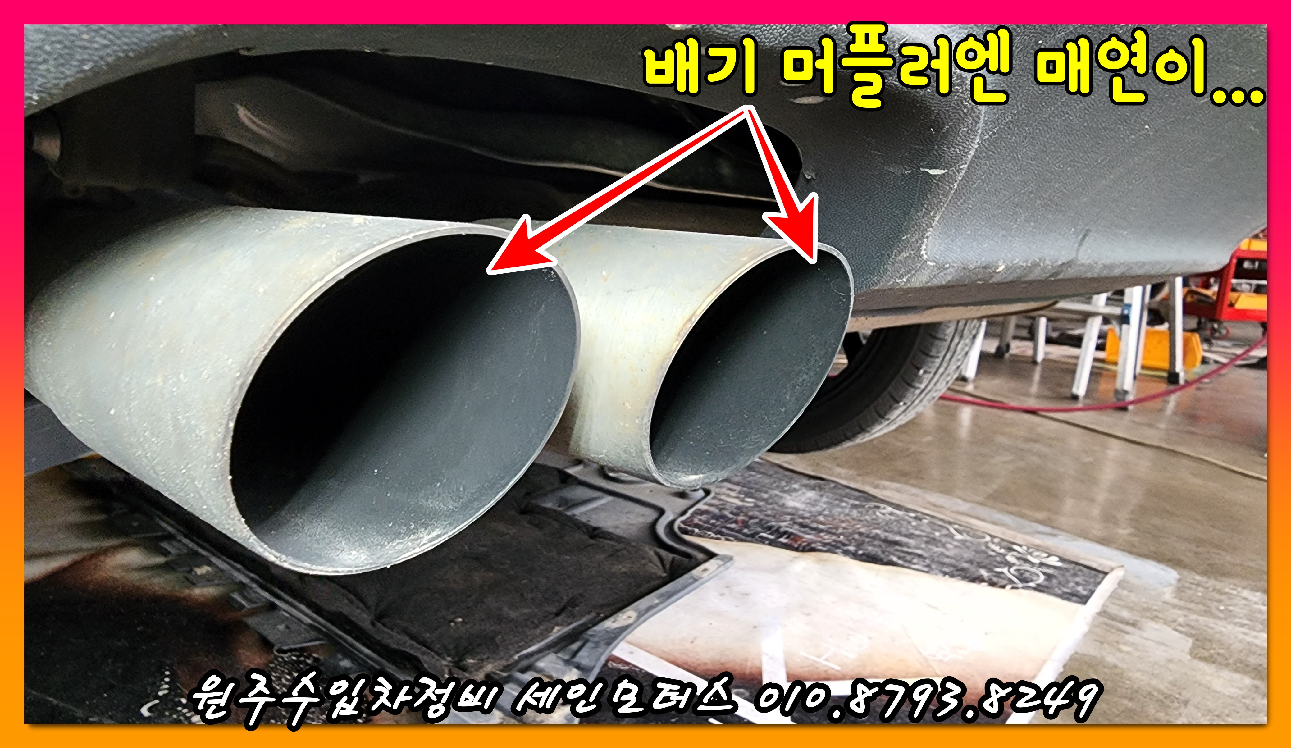 배기 머플러에는 이미 매연을 엄청 뿐어내고 있었다.