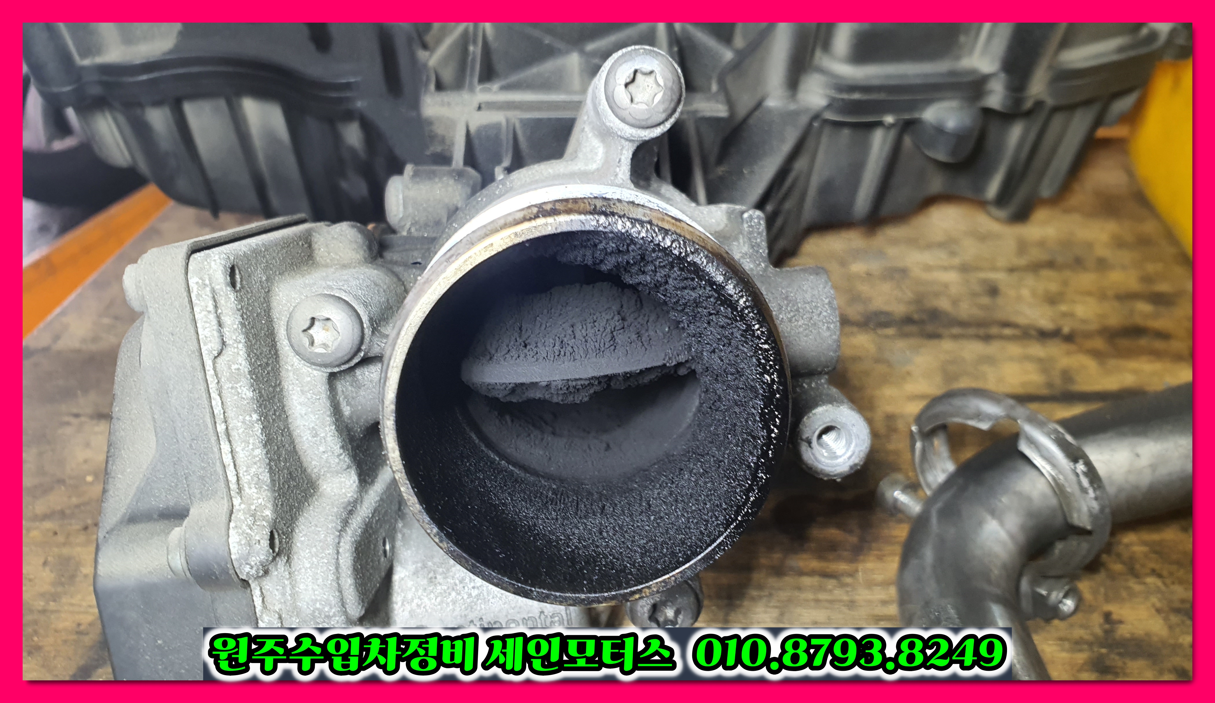 스로틀밸브에 쌍여 있는 카본의 양이 언뜻 보기에도 장난이 아니죠?