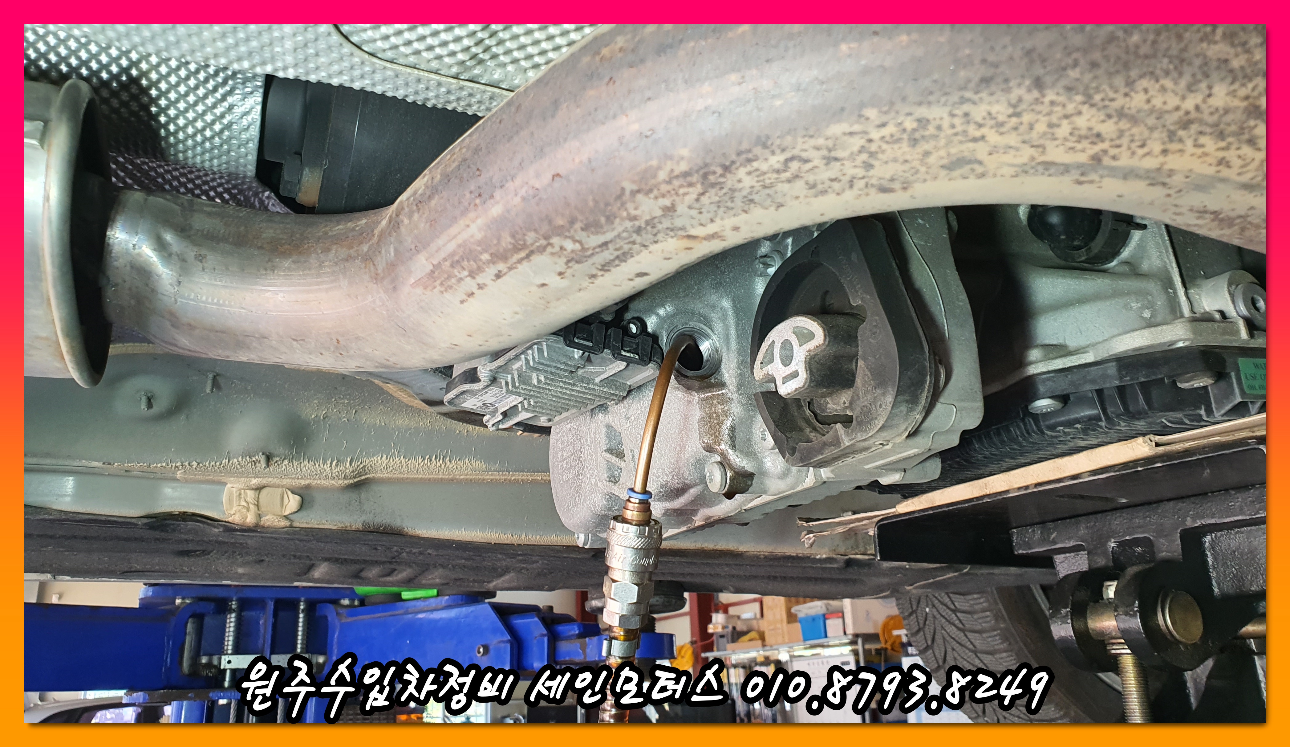 후륜 #디퍼런셜 오일을 교체하고 있다.