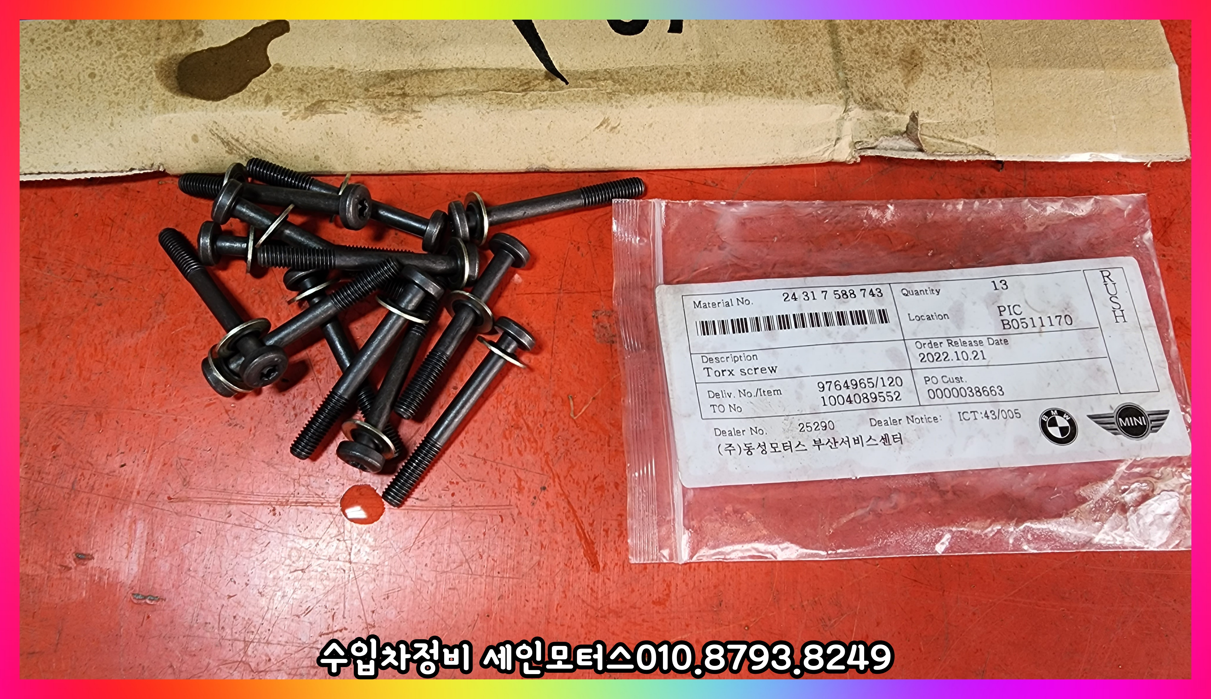 볼트에 사용되는 와셔의 고무 씰링 부분이 경화되면서 발생했던 것인데 볼트와 와셔가 세트로 공급이 된다.