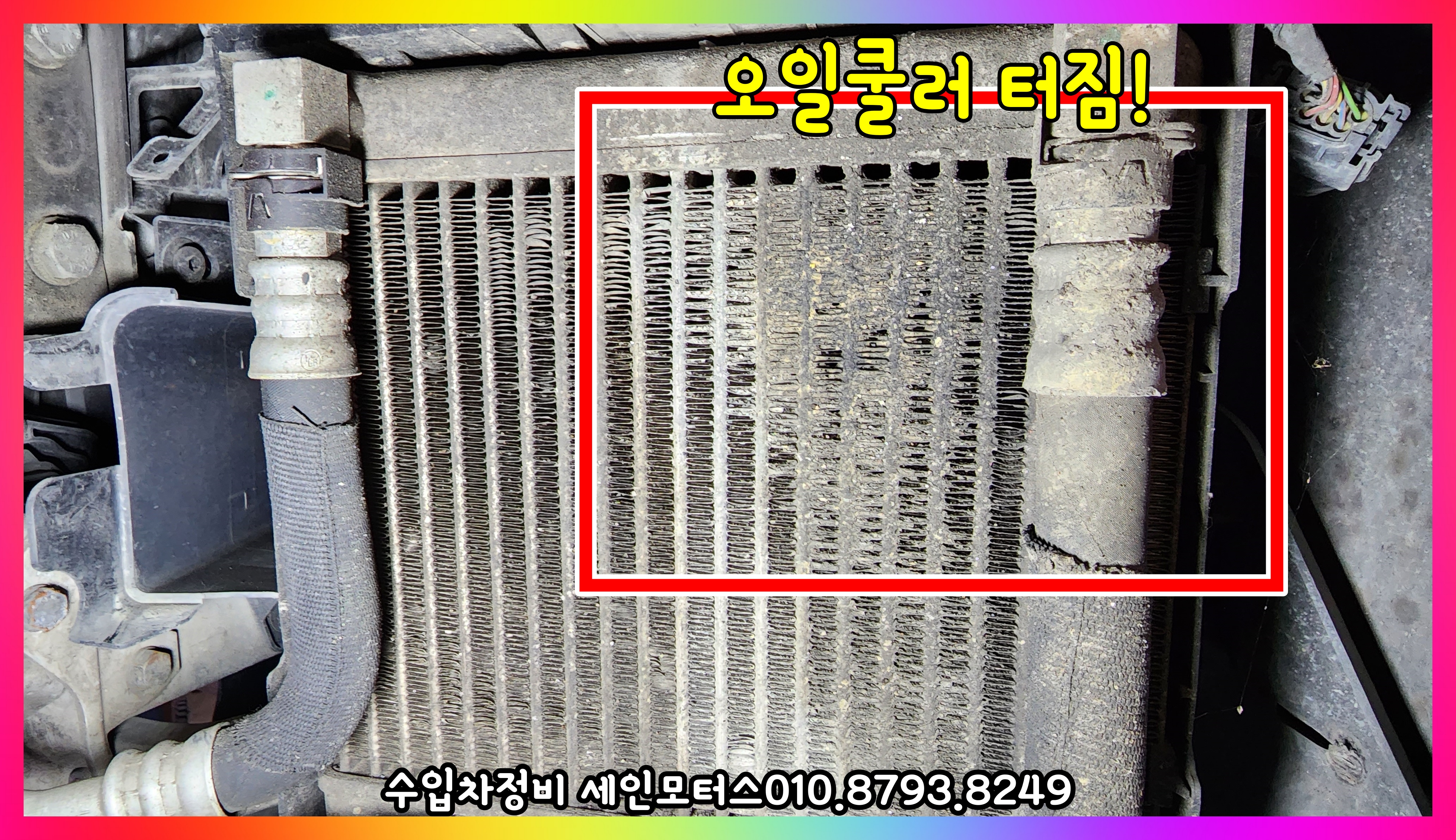 오일쿨러도 살짝 터져서 누유된 오일로 흙먼지가 잔뜩 엉겨있다.