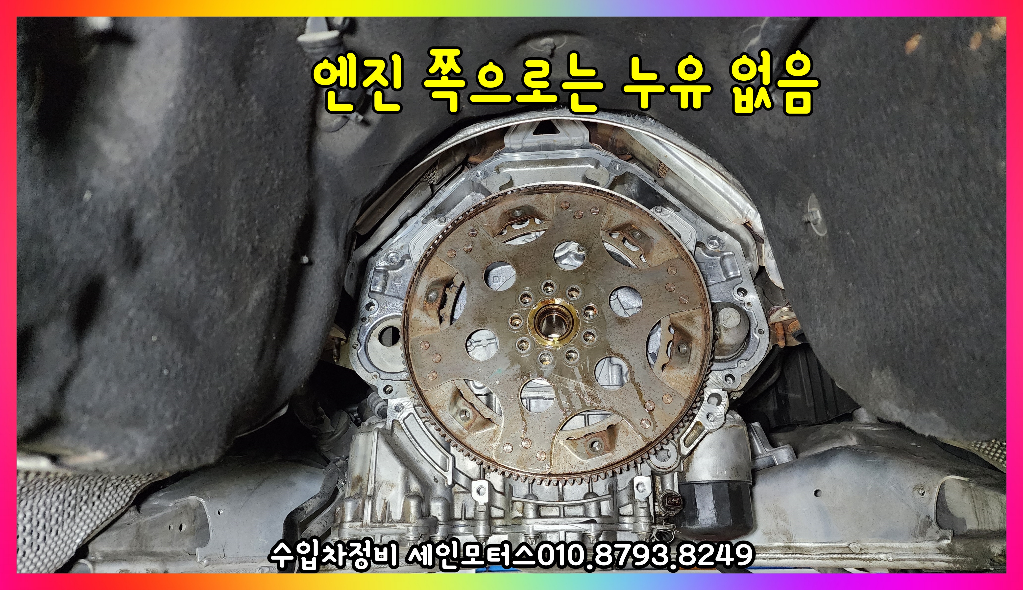 변속기 오일펌프 밑으로 누유가 되었던 흔적이 보인다.