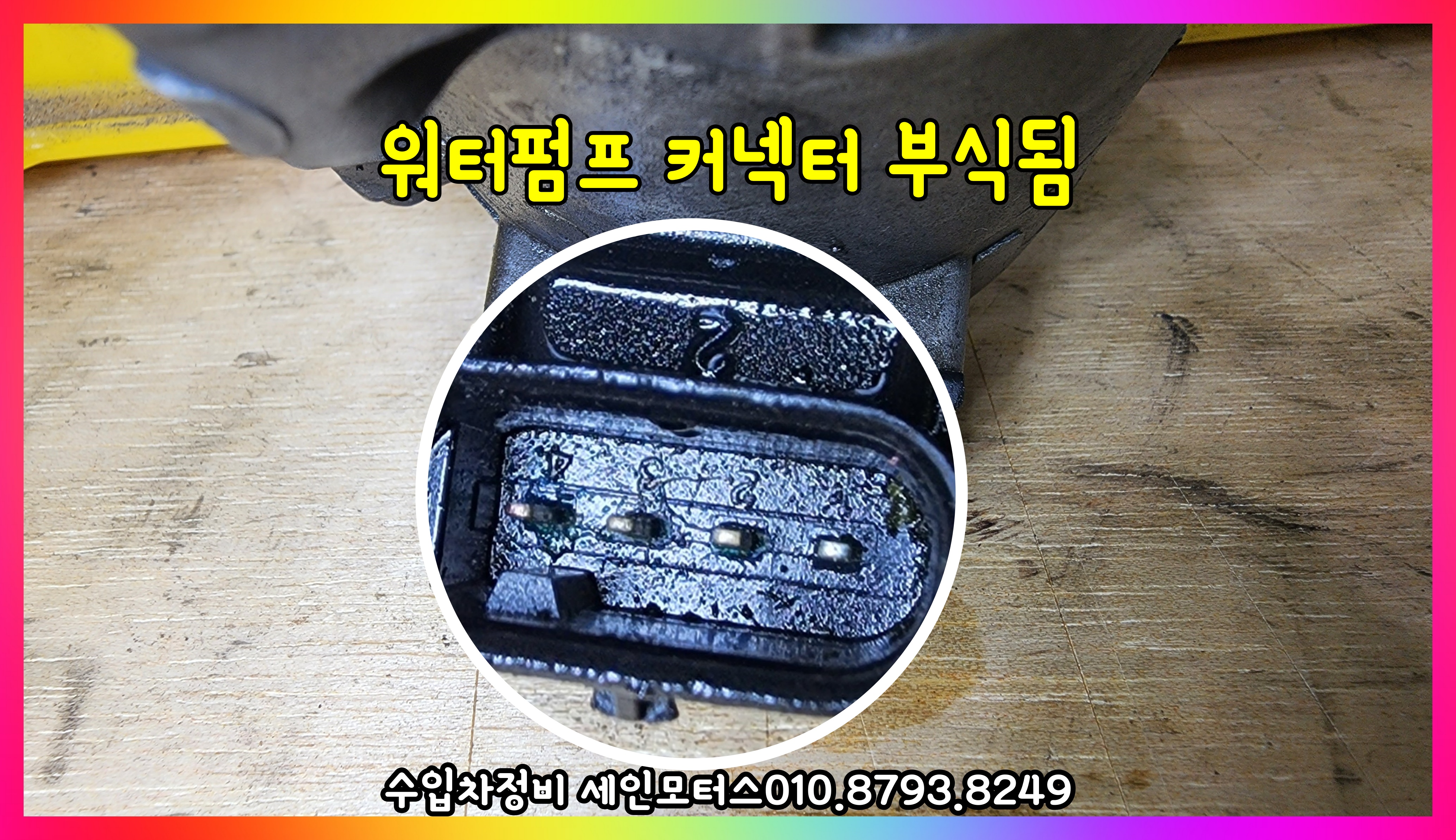 사진에서 큰 워터펌프는 내부에서 누수가 되면서 커넥터가 부식이 된 상태다.