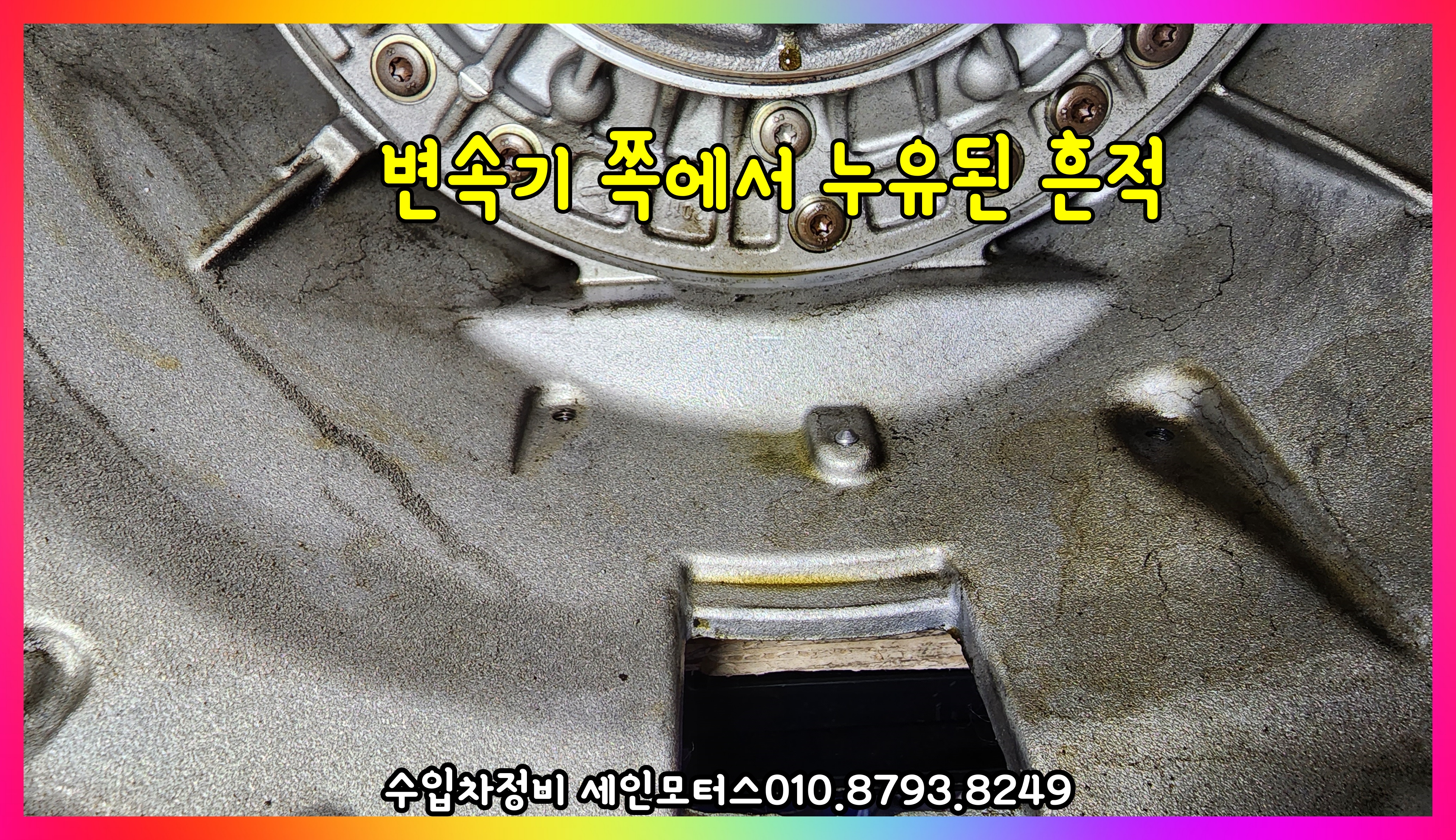 변속기 오일펌프 밑으로 누유가 되었던 흔적이 보인다.