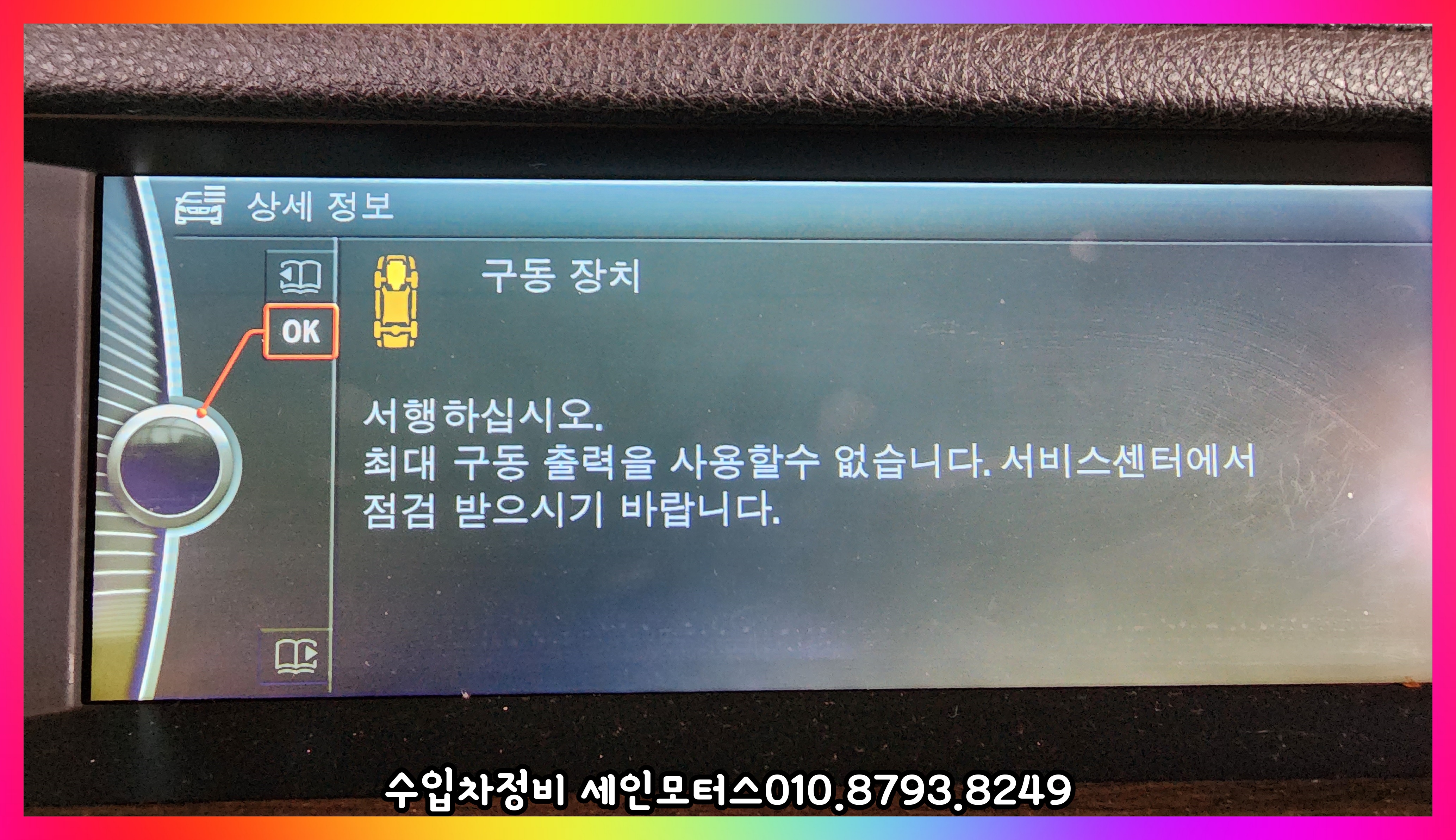 BMW 750Li 차량이 위 사진과 같은 안내 문구가 뜨면서 계기판에 엔진 경고등이 점등이 되었다.