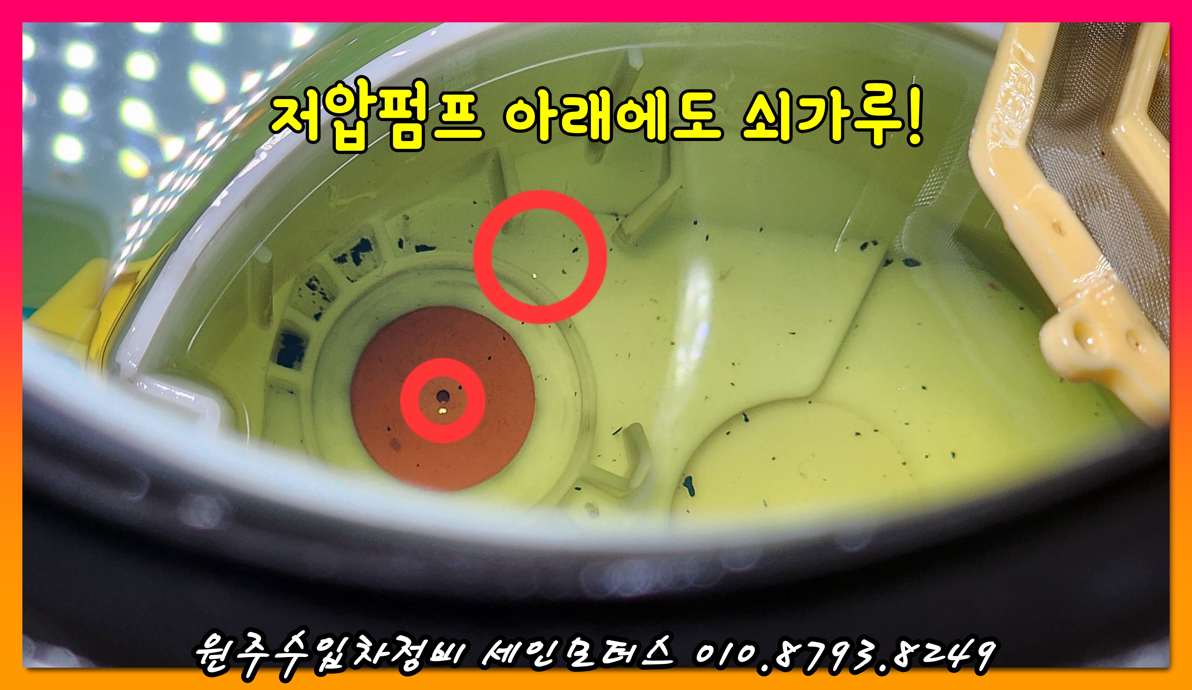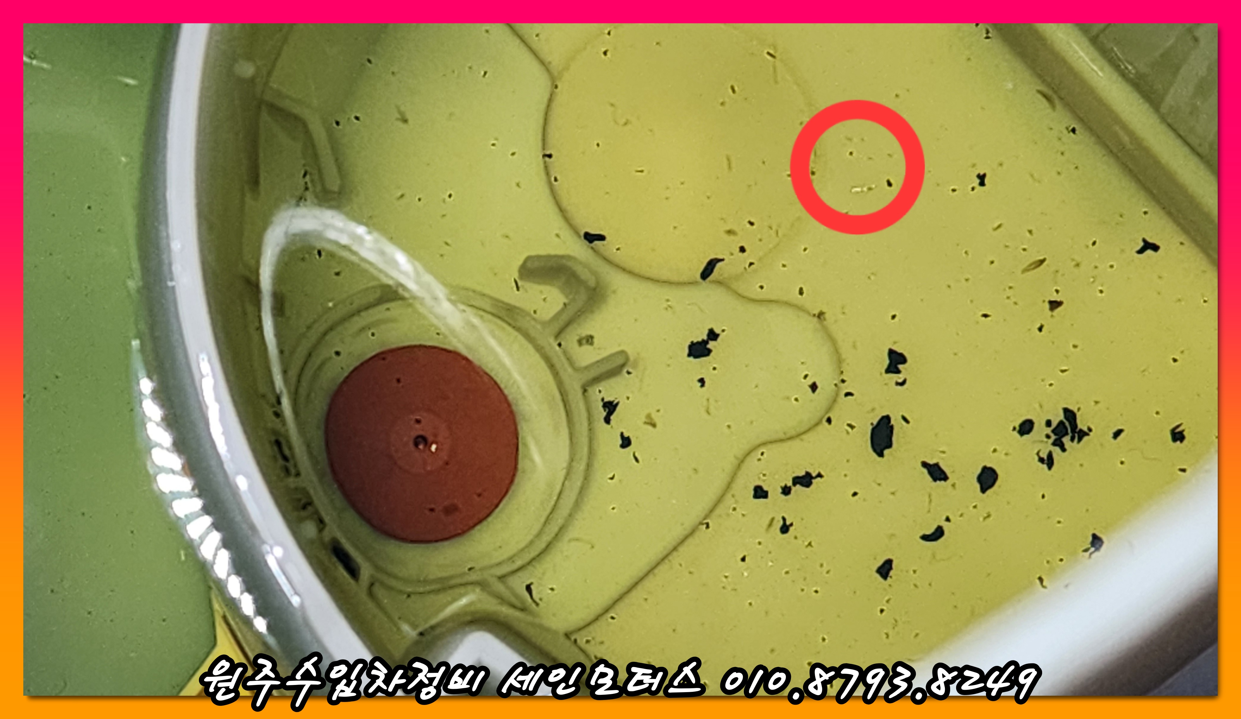 이 사진은 #연료탱크 내부의 저압펌프 아래에 쇳가루들이 돌아 다니는 모습이다.