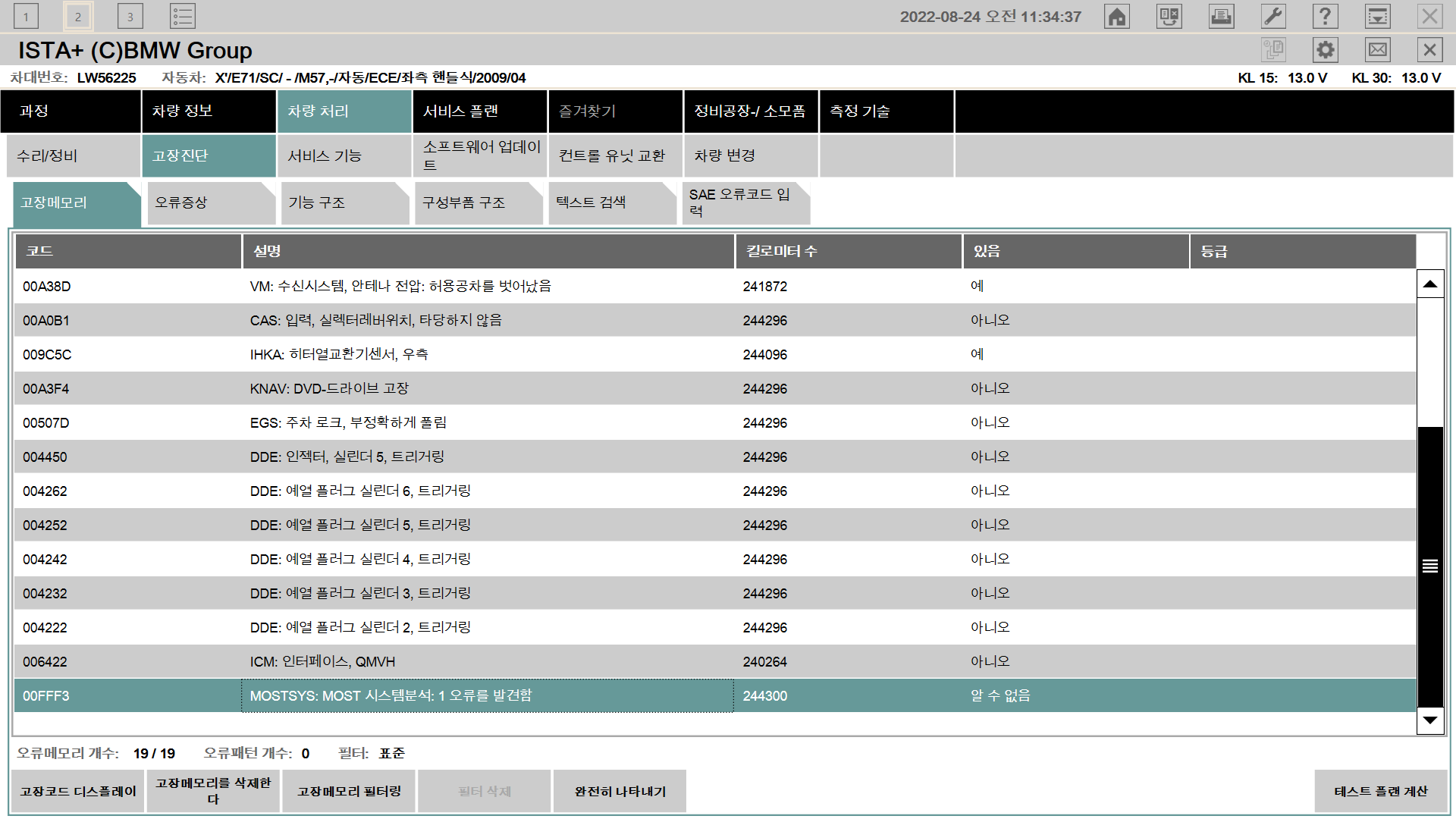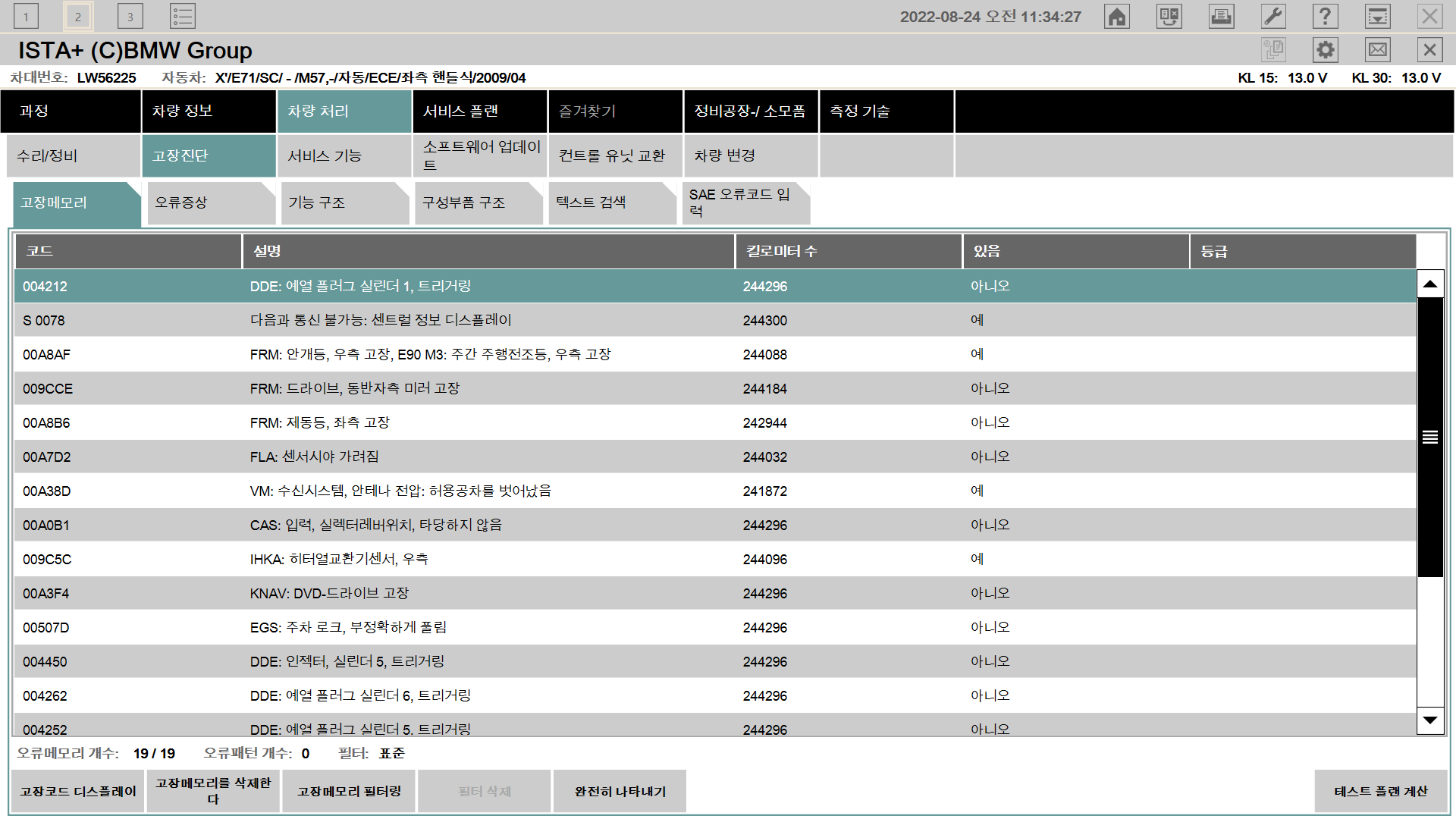 진단기 연결해서 점검하는데 고장코드가 어마어마하게 많다.