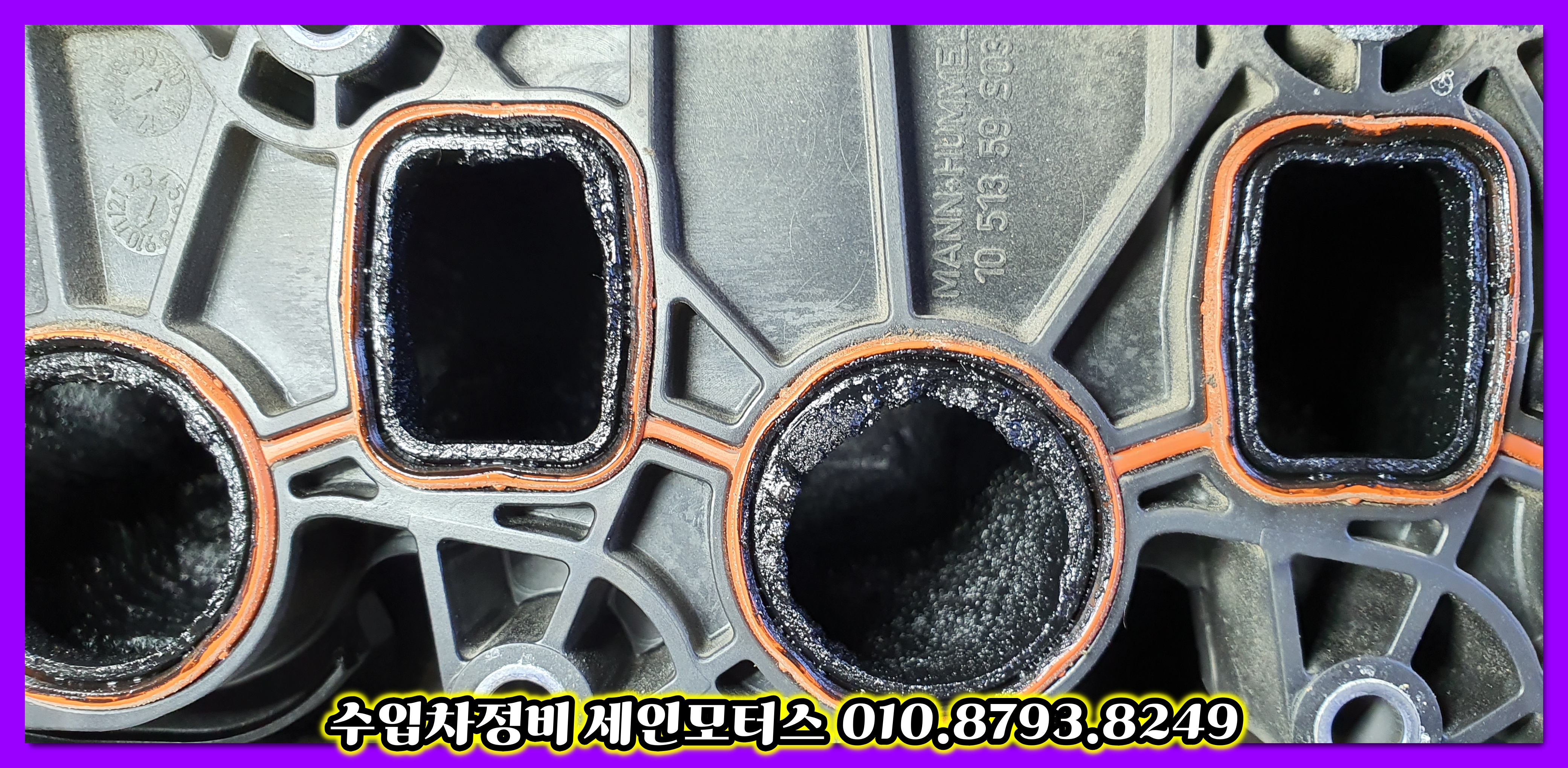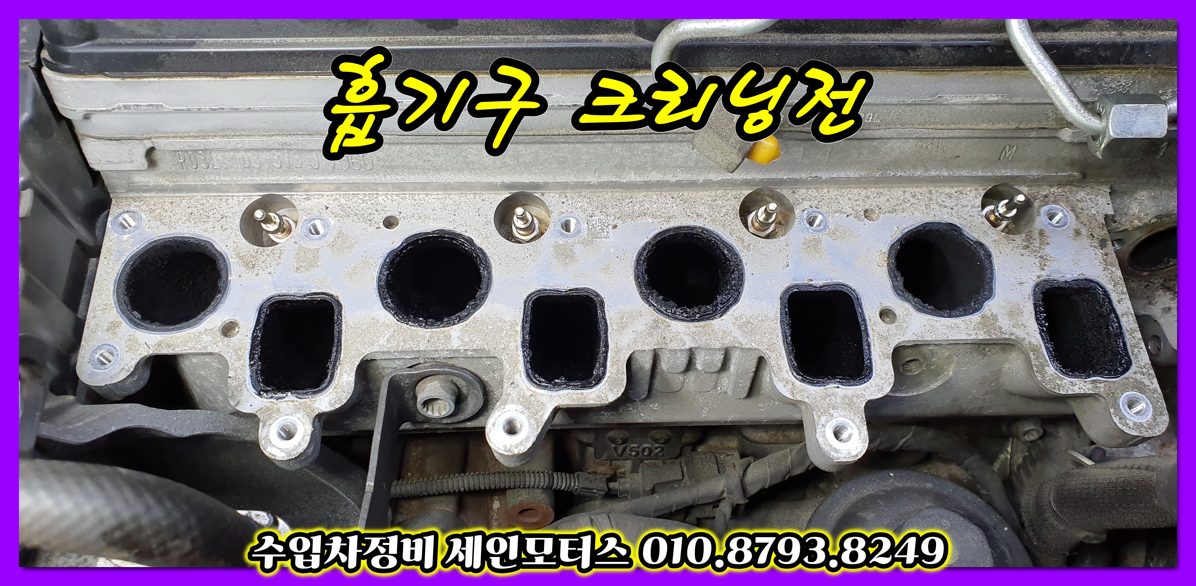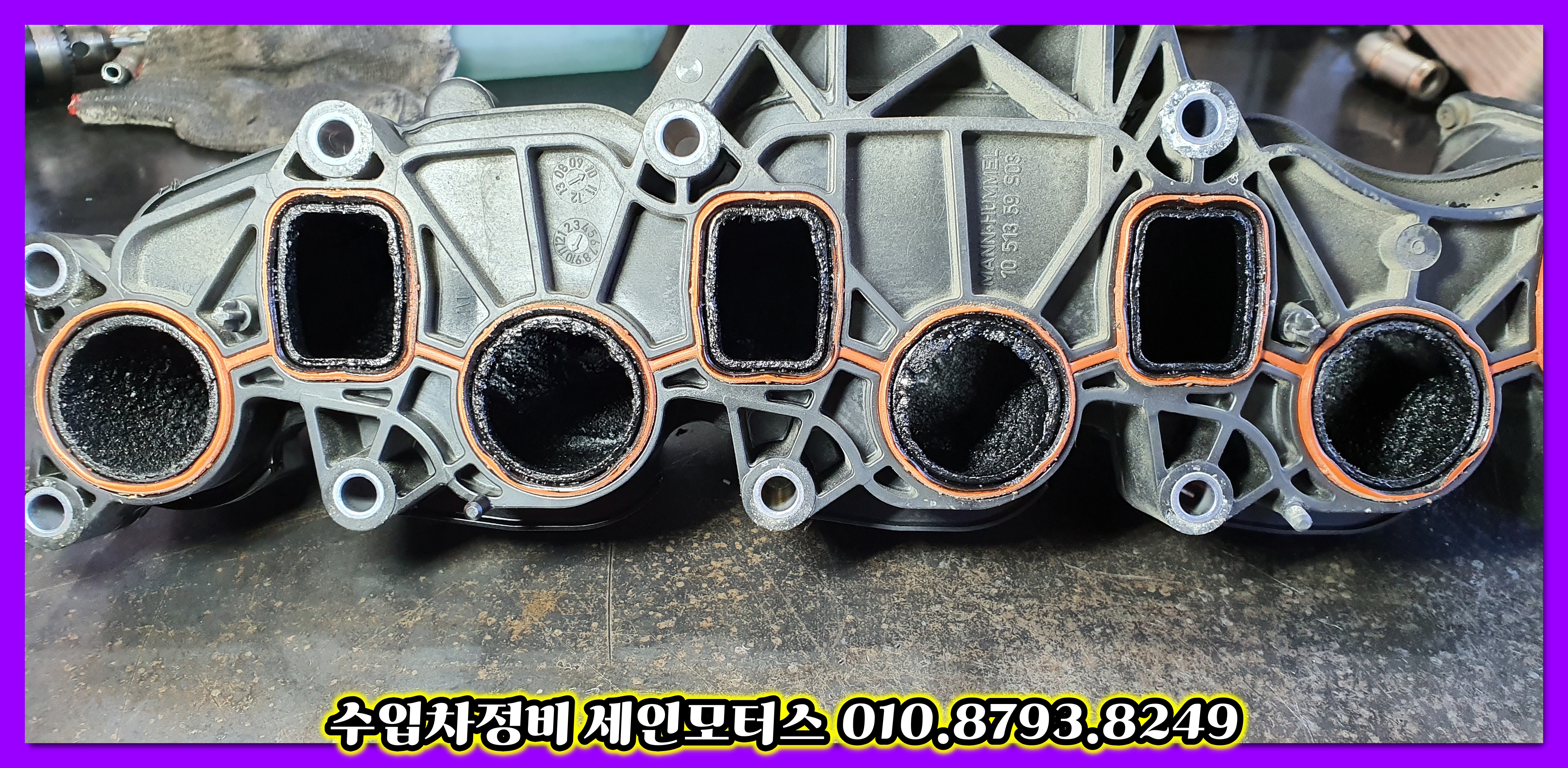 흡기매니폴드의 카본이 제거된 모습이고요.