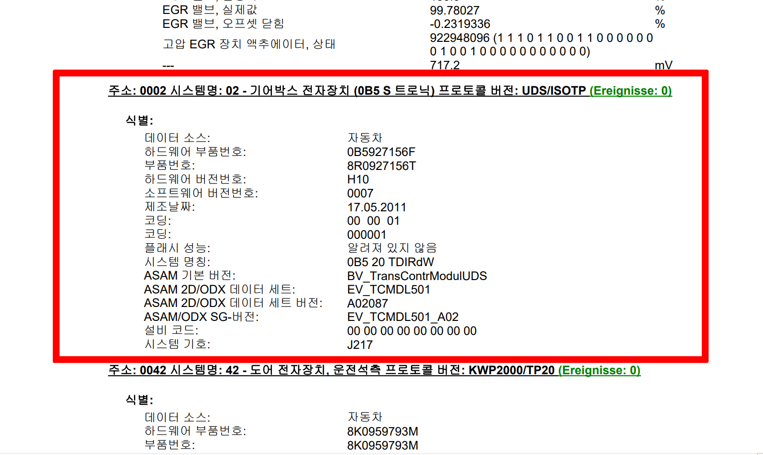 이 차량은 엔진쪽도 미션쪽도 고장코드가 없습니다.