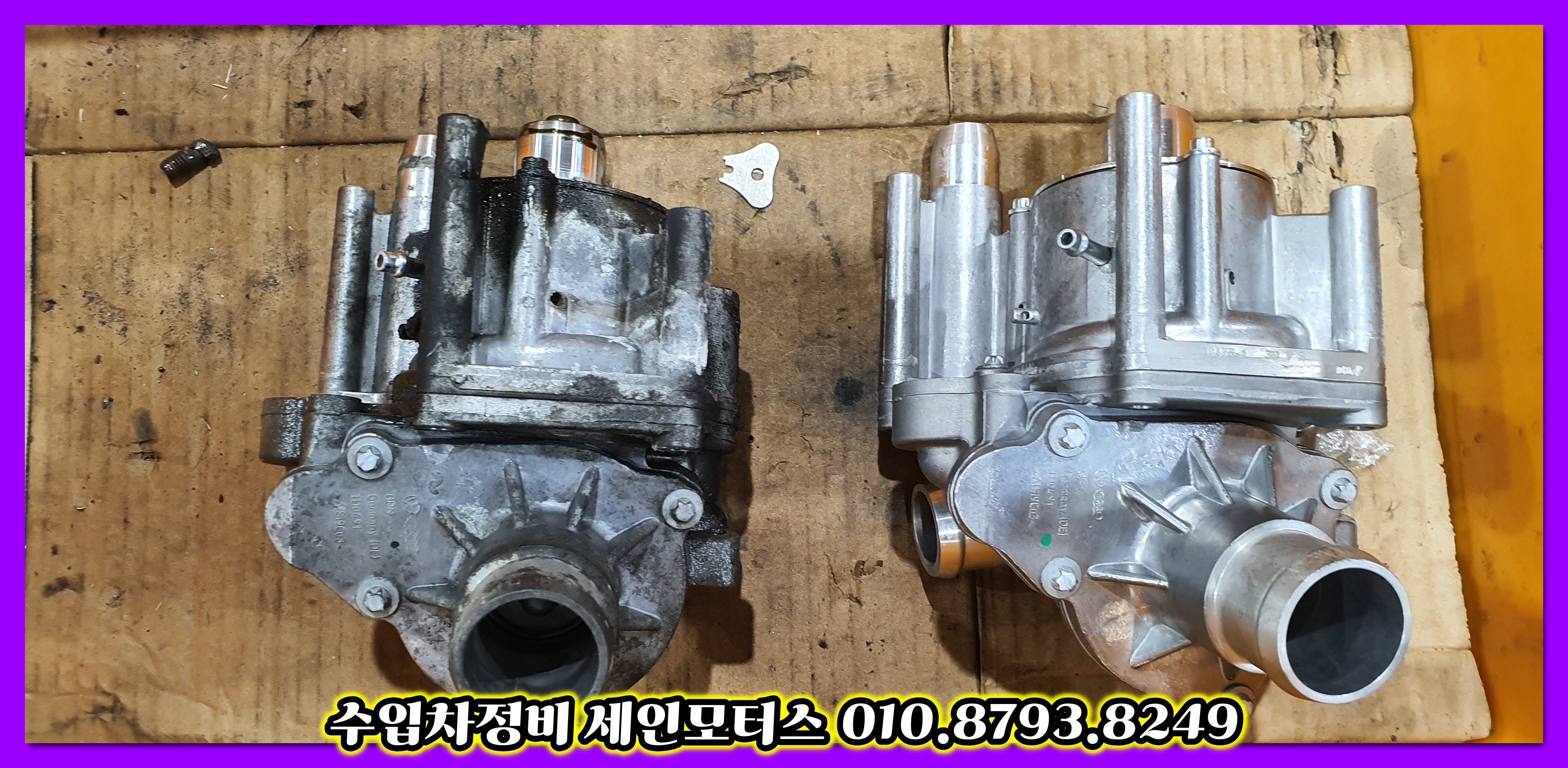 탈거된 부품과 신품 워터펌프입니다.