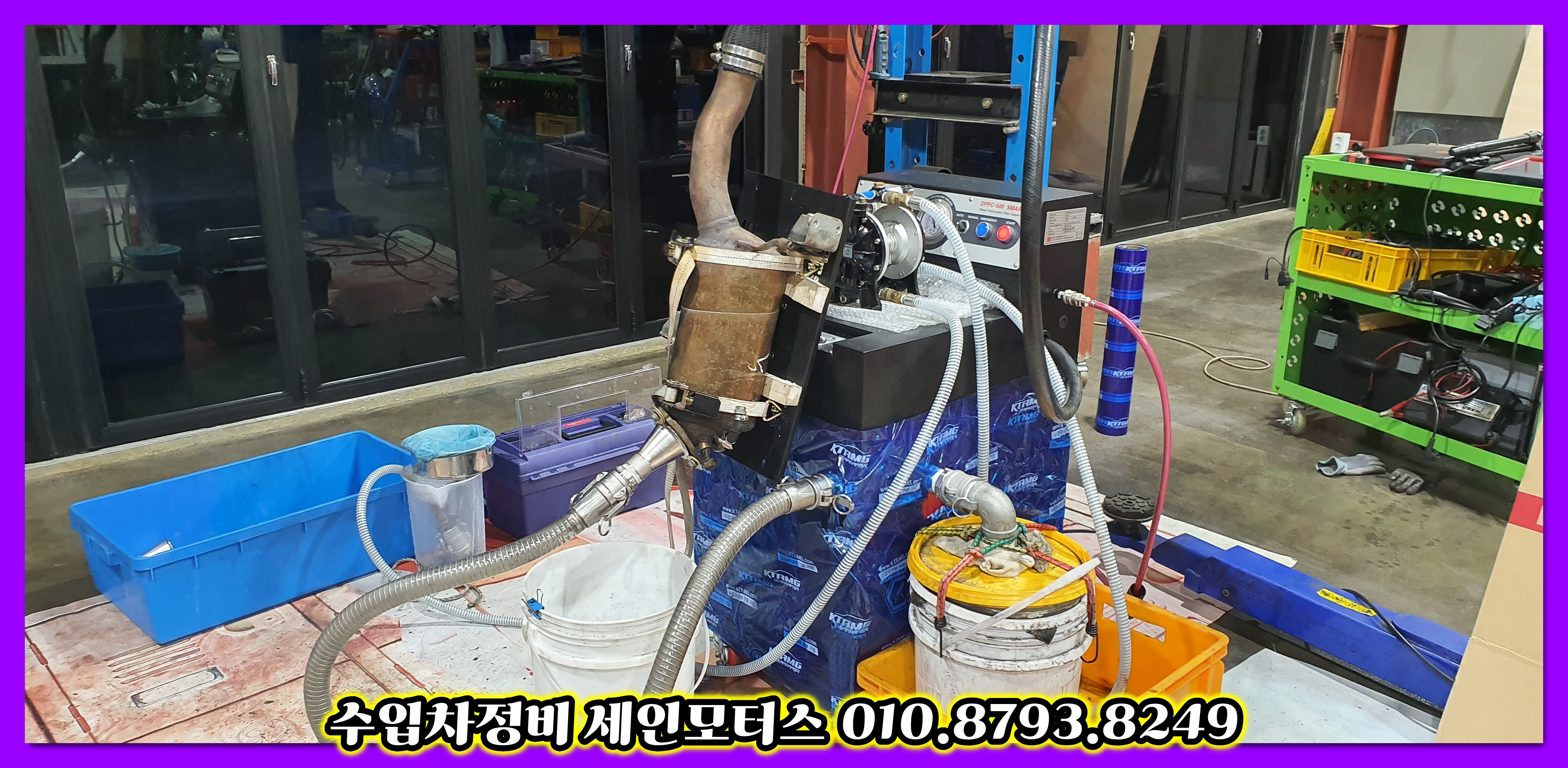 dpf는 장비에 세팅후 계속 열심히 클리닝을 하고 있습니다.
