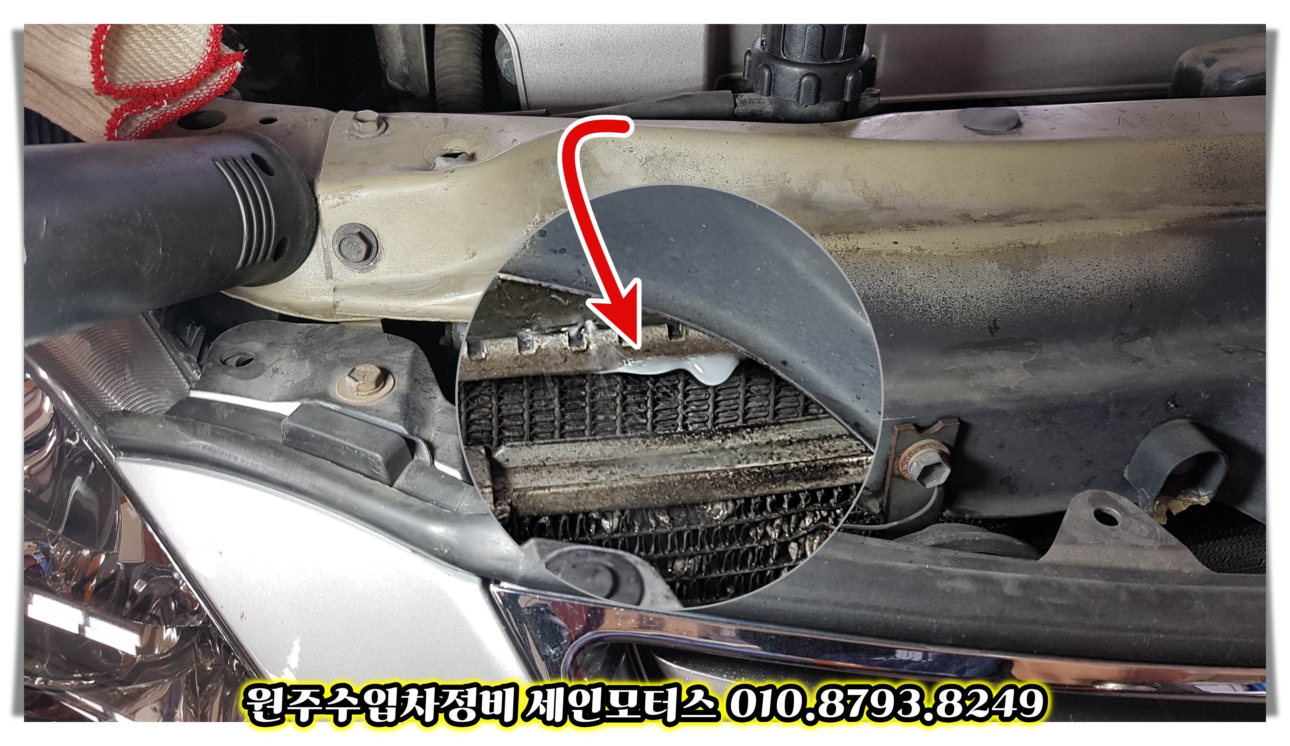 라디에이터를 교환해야한다고 고객님께 설명드리고
