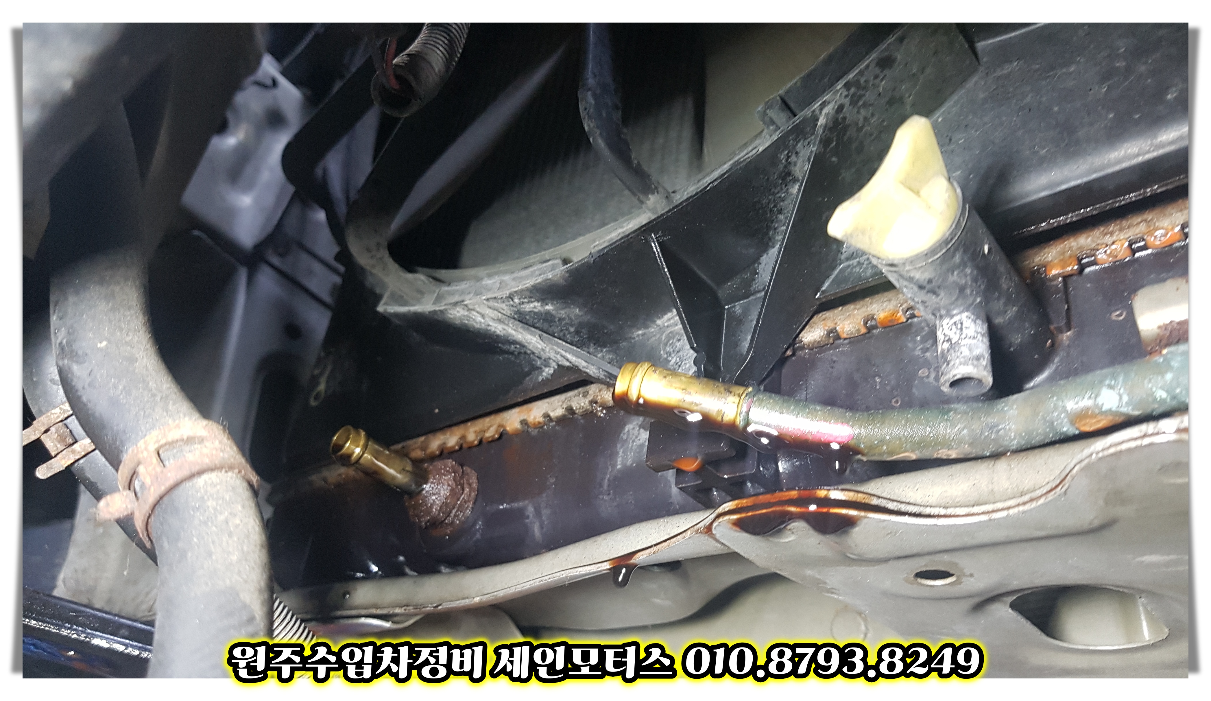 라지에터를 교환하는 과정에 미션오일의 쿨러 부분을 탈거하는데