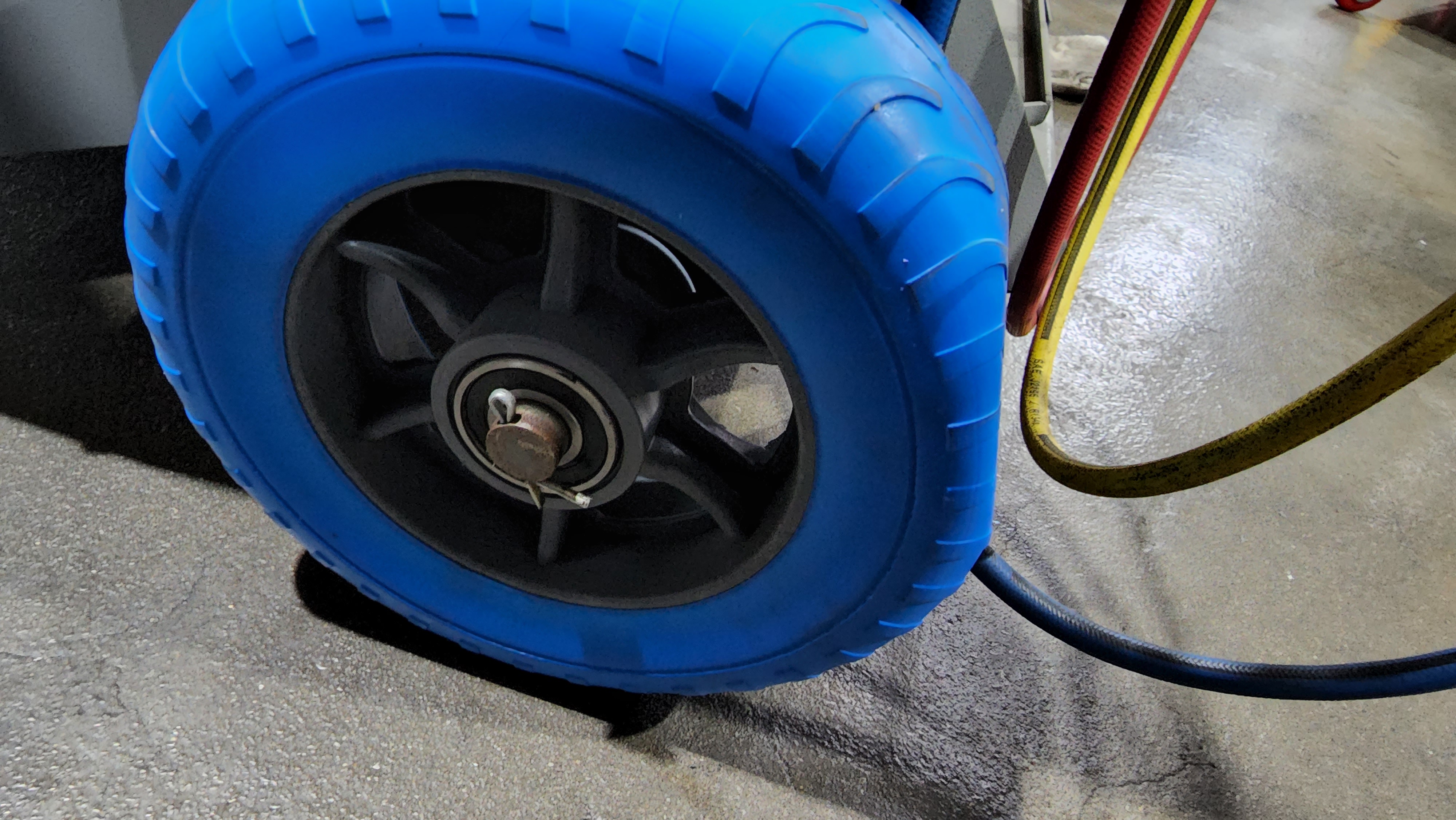 저걸 바퀴라고 만들었네요. 그렇잖아도 에어컨장비가 전자저울이 달려 있어서 충격에 민감해서 펑크 안나는 바퀴라고 구매했는데...쓰레기통으로 가야겠습니다.