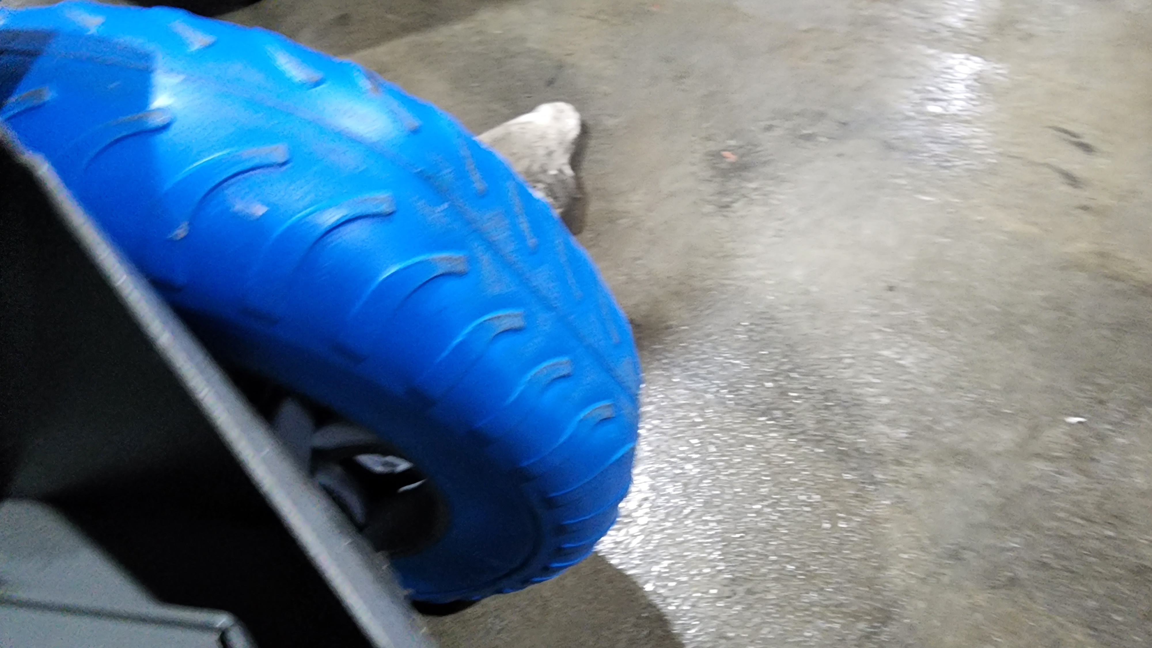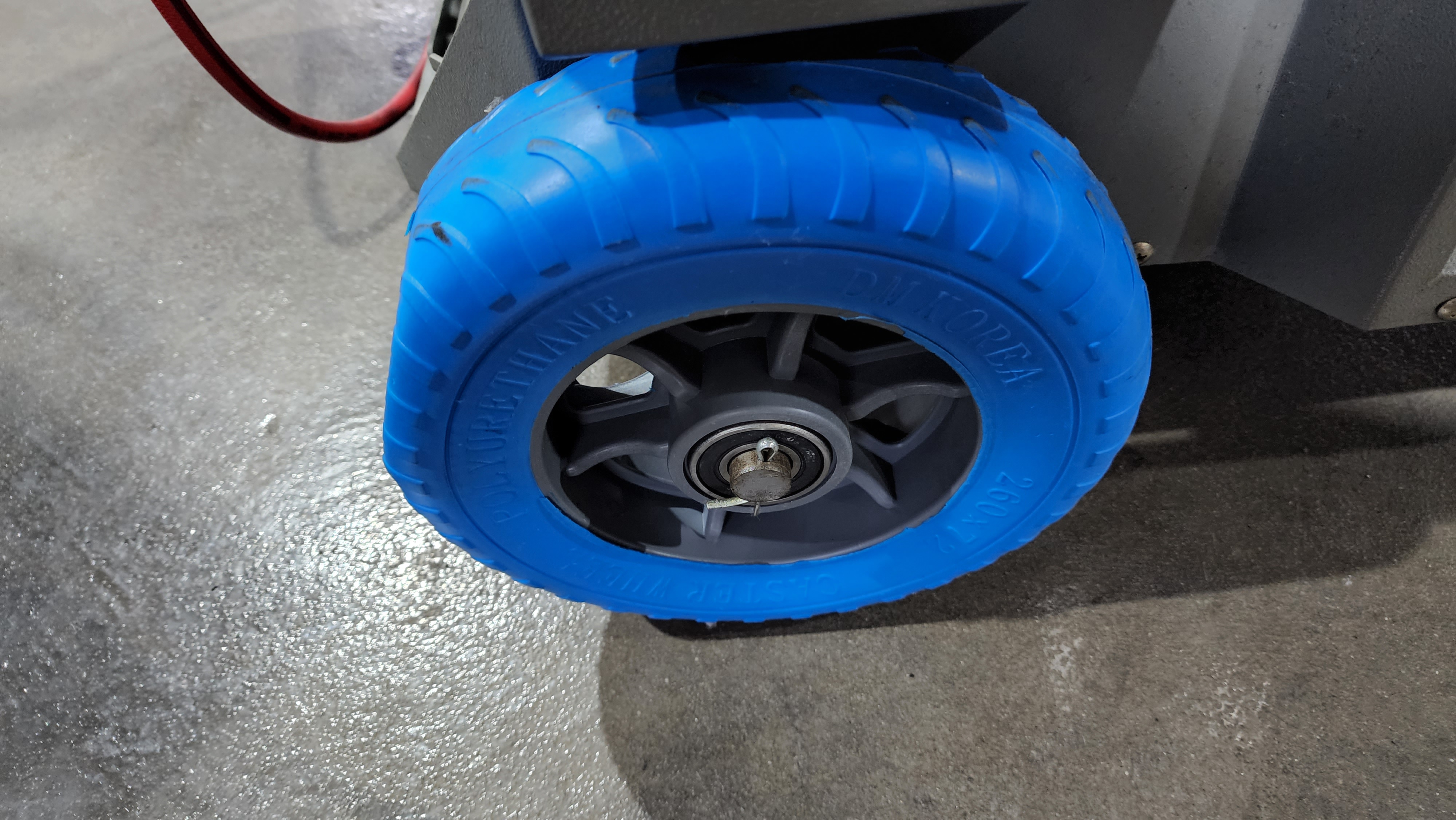 저걸 바퀴라고 만들었네요. 그렇잖아도 에어컨장비가 전자저울이 달려 있어서 충격에 민감해서 펑크 안나는 바퀴라고 구매했는데...쓰레기통으로 가야겠습니다.