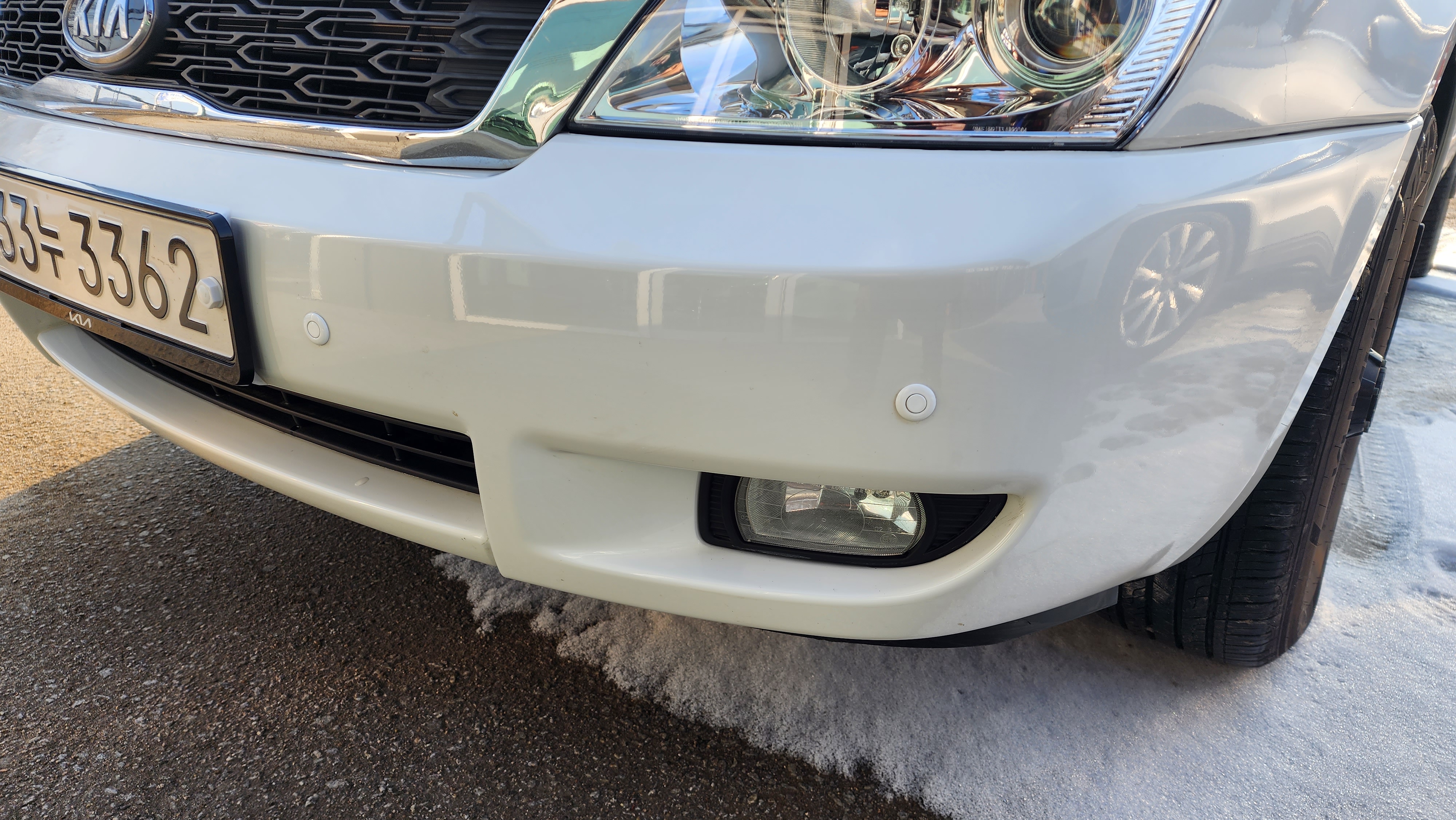 앞 범퍼에는 원래 감지기가 없었는데 사제로 장착해서 없는 것 보다는 훨씬 편하게 운전이 가능합니다.