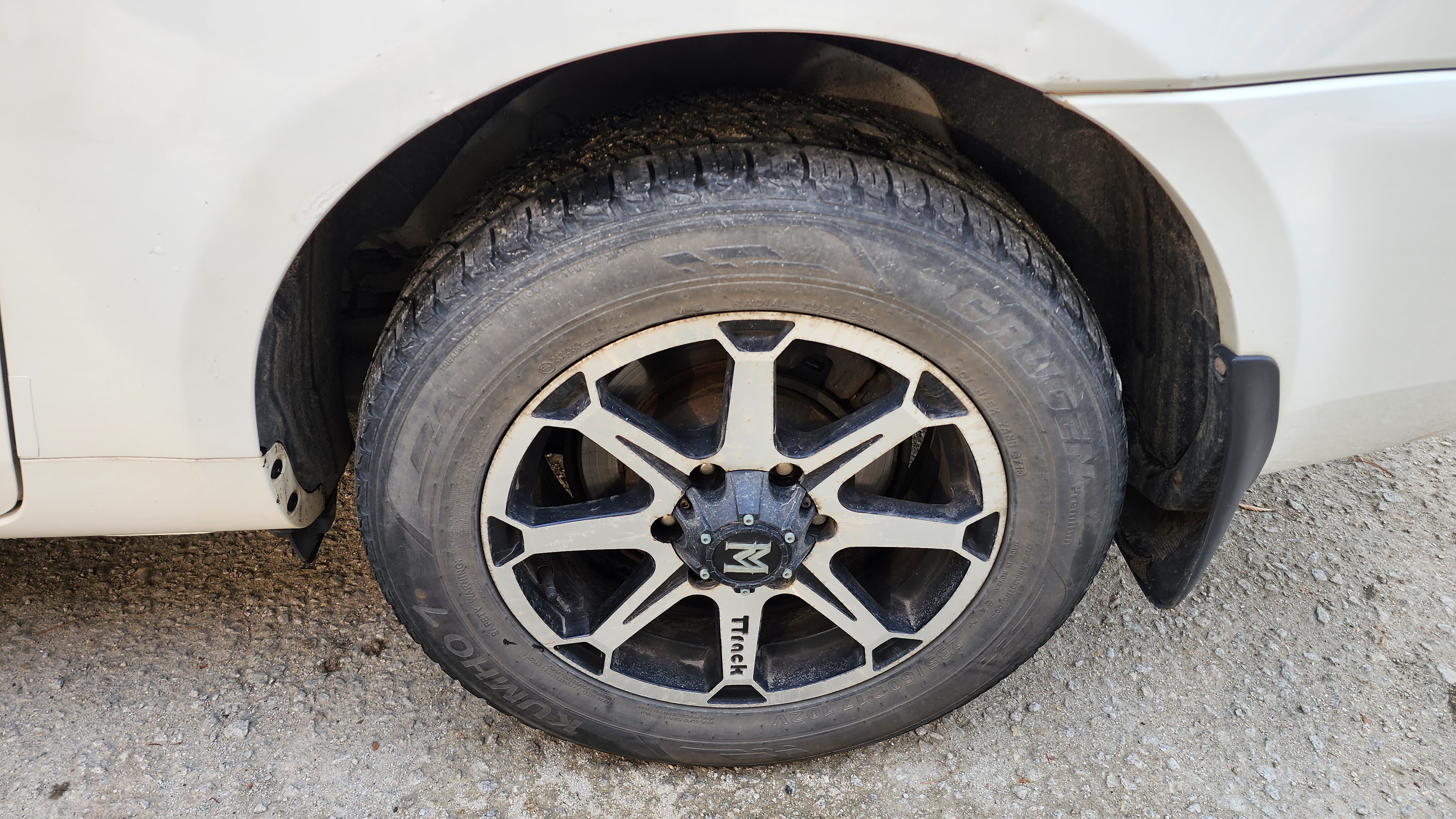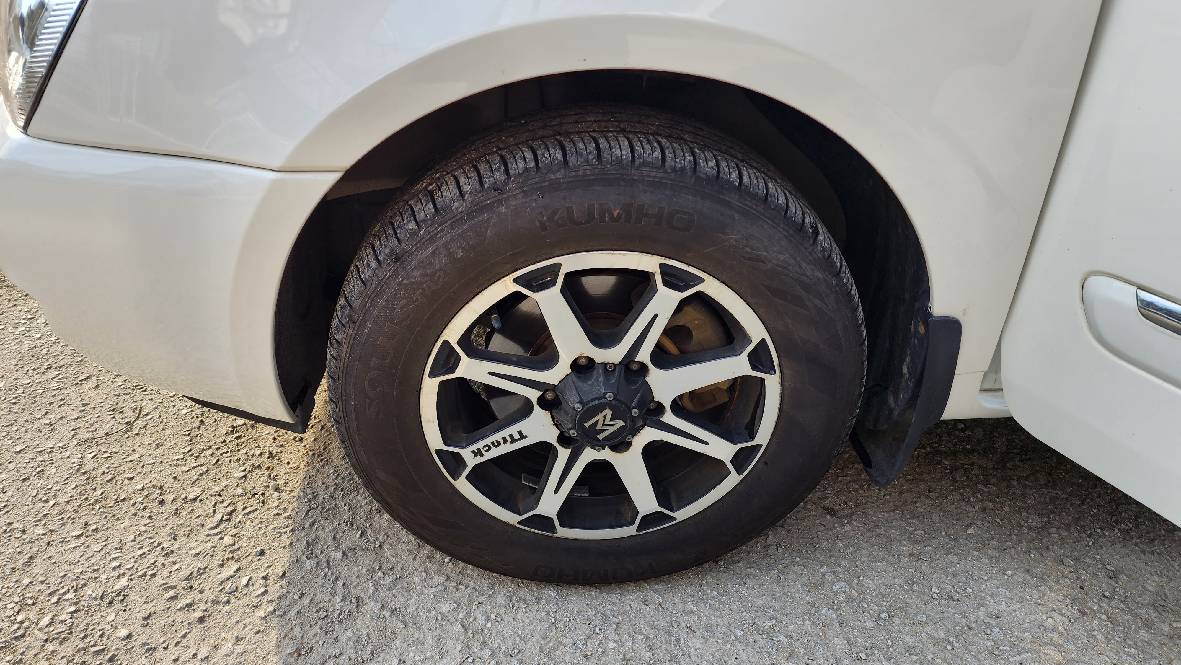 타이어 상태는 앞 쪽은 아직 60% 이상 남아 있으며 뒤 쪽도 아직 사용하기에 충분합니다.